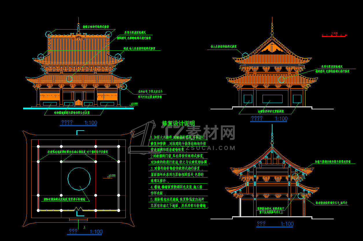 CAD古建筑施工图纸