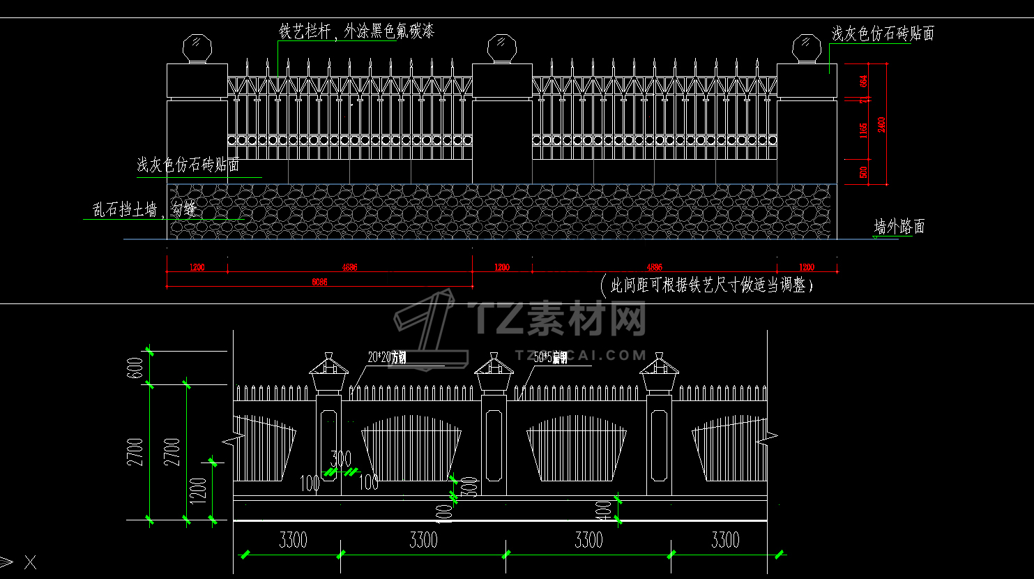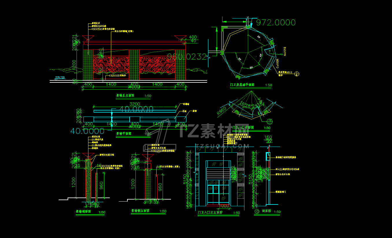 CAD庭院中式外墙施工图