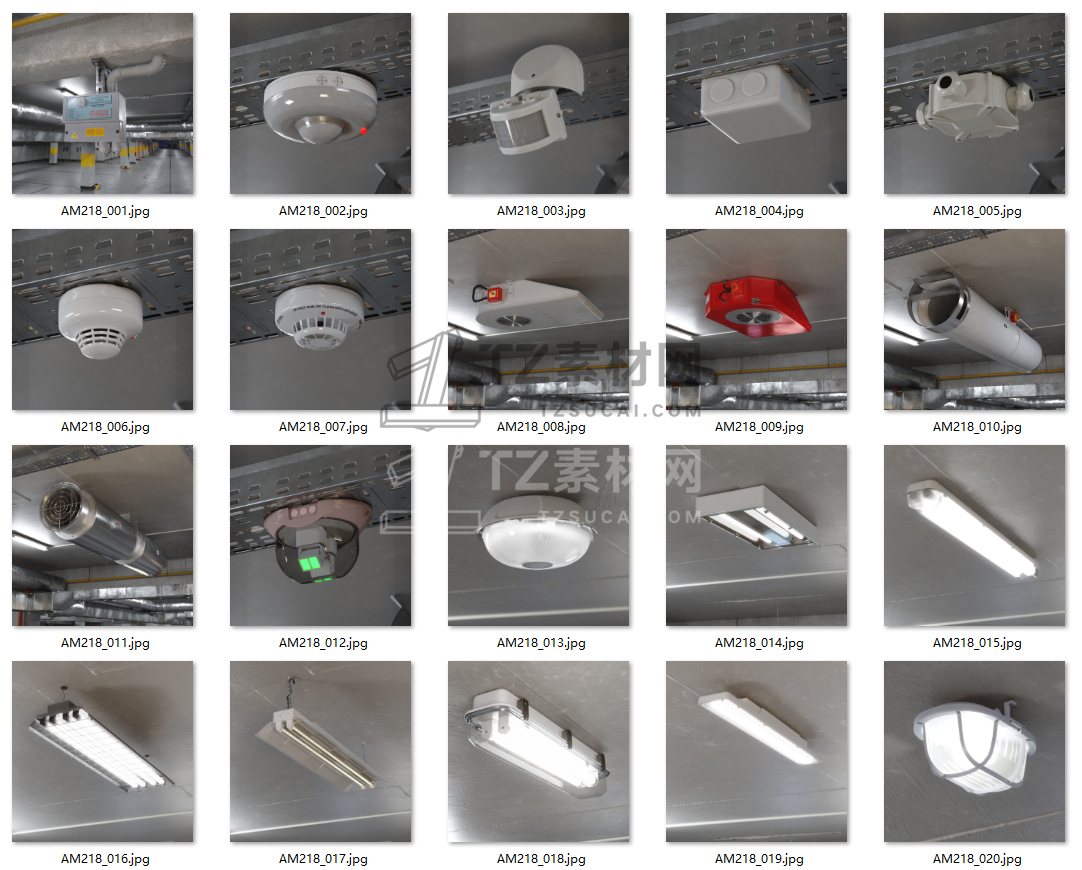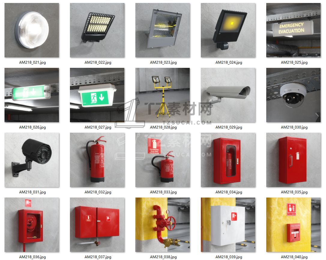 Archmodels vol. 218包含高精度地下库安全设备相关3D模型,比如各种灯、消防栓、电箱、监控摄像头、管道、门等,C4D/3DS MAX/OBJ/FBX格式,Vray渲染器,包含贴图