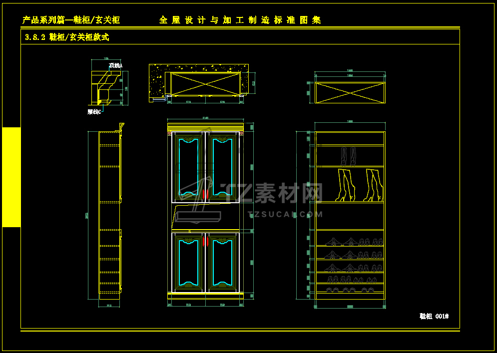 全屋设计电视柜床头柜实木鞋柜家具CAD图库
