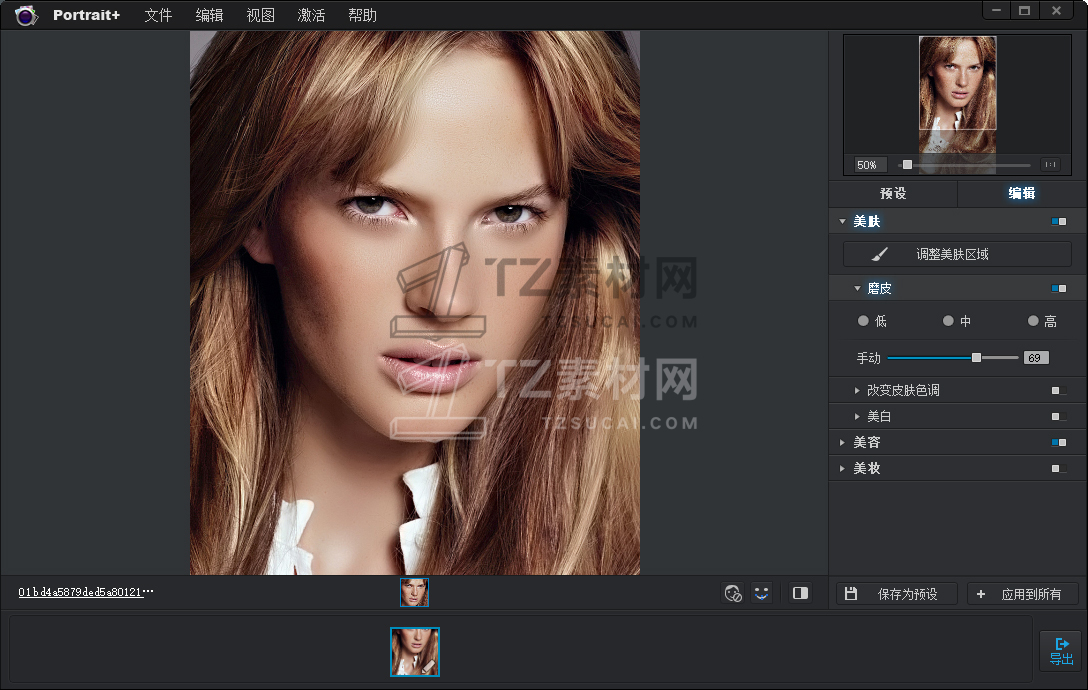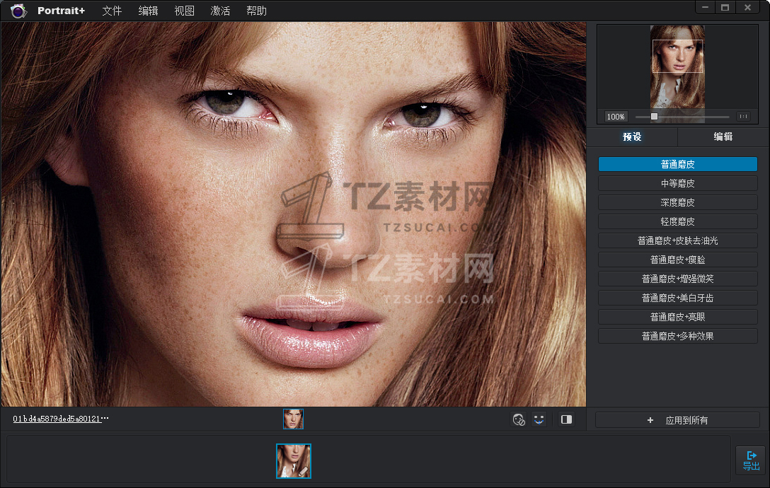 ArcSoft Portrait+ 中文完美版是一款智能化的人像磨皮软件,采用世界上最尖端的人脸检测技术,能够自动检测人像脸部进行磨皮。ArcSoft Portrait+ 还支持批量处理功能,能同时处理上千张照片,将繁琐而费时的人像修片处理过程简化到只需一次点击。ArcSoft Portrait+ 磨皮软件相比其他同类人像磨皮美化软件来说操作简单,易于上手,只要轻点几下鼠标就可以完成磨皮操作,而无需像Photoshop、其他磨皮软件那样进行复杂的选区选择。即使普通用户也能轻松进行人物磨皮操作。亲测支持PS CC 2019。