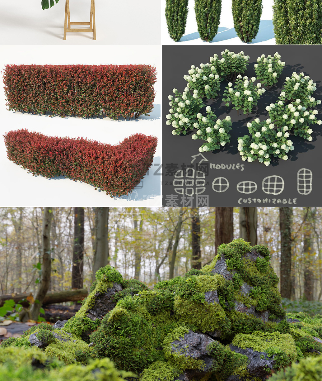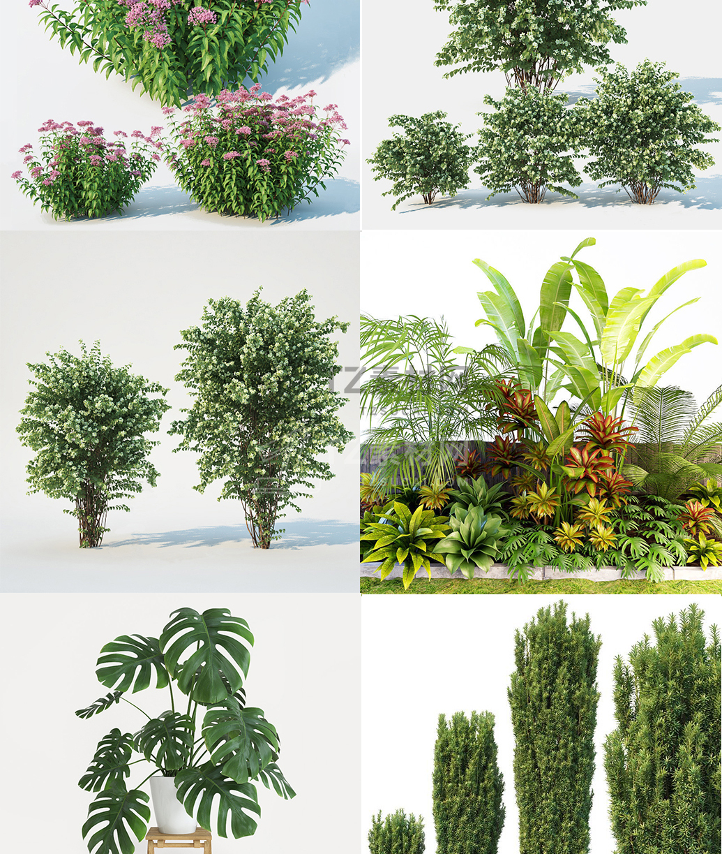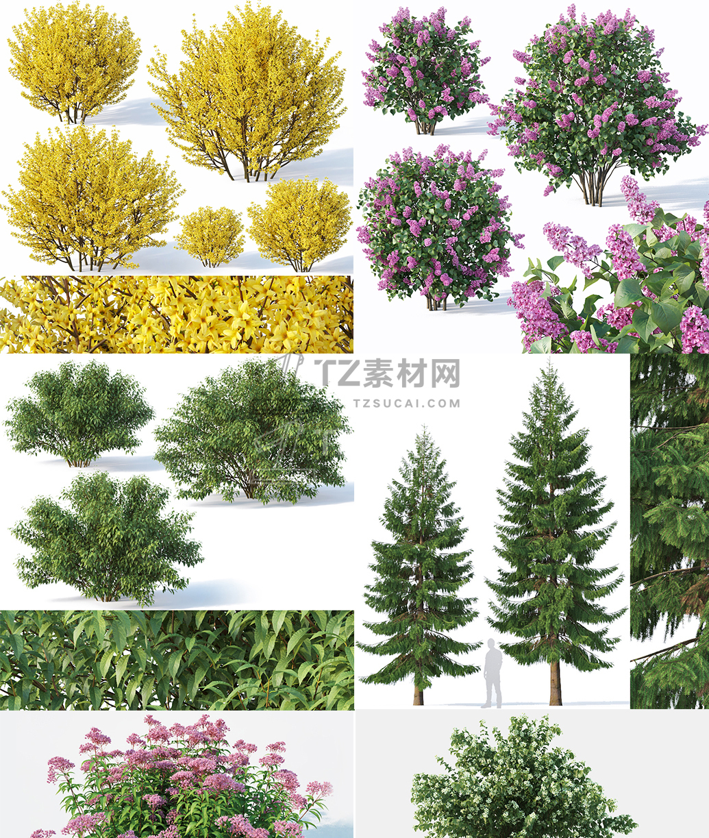- Forsythia 7 bushes plus 2 hedges collection 3D model.rar