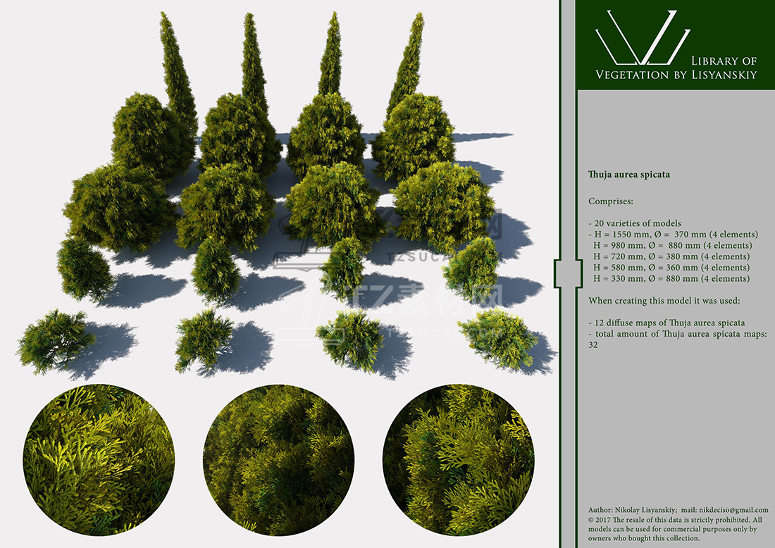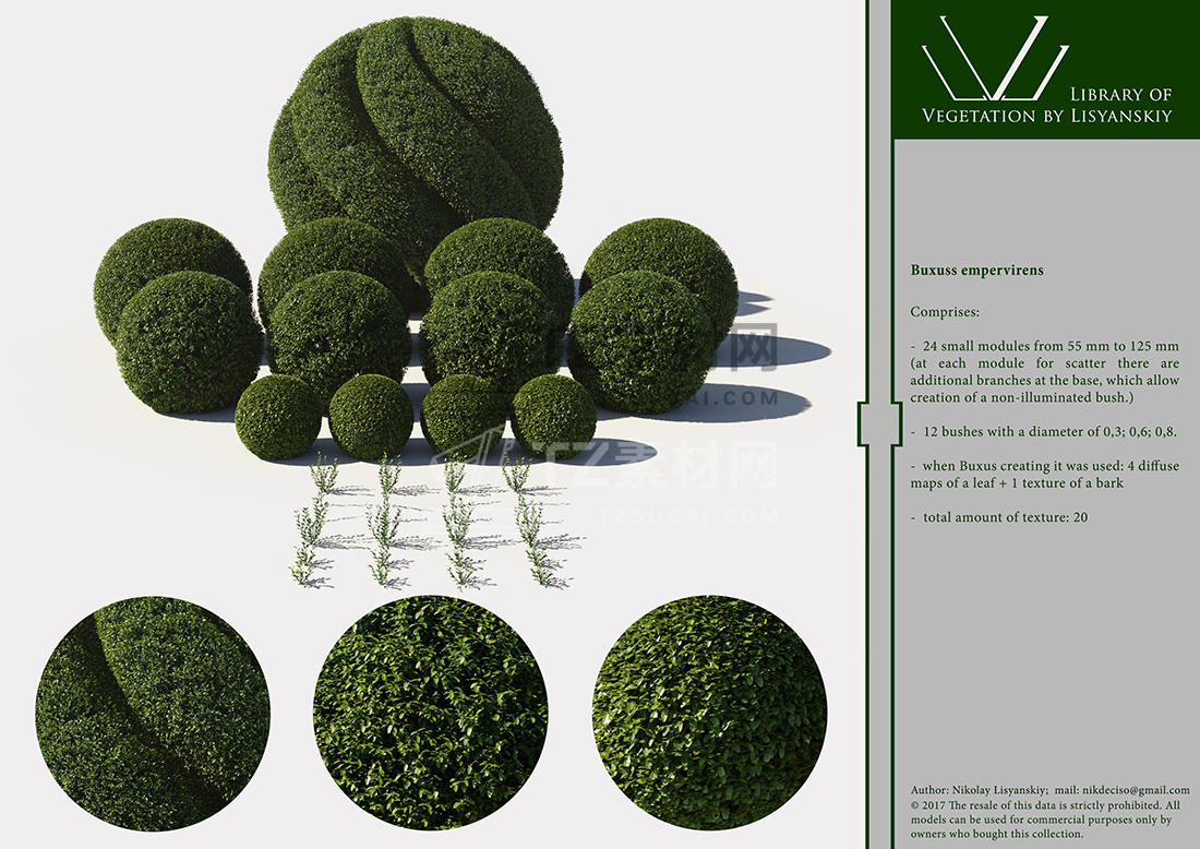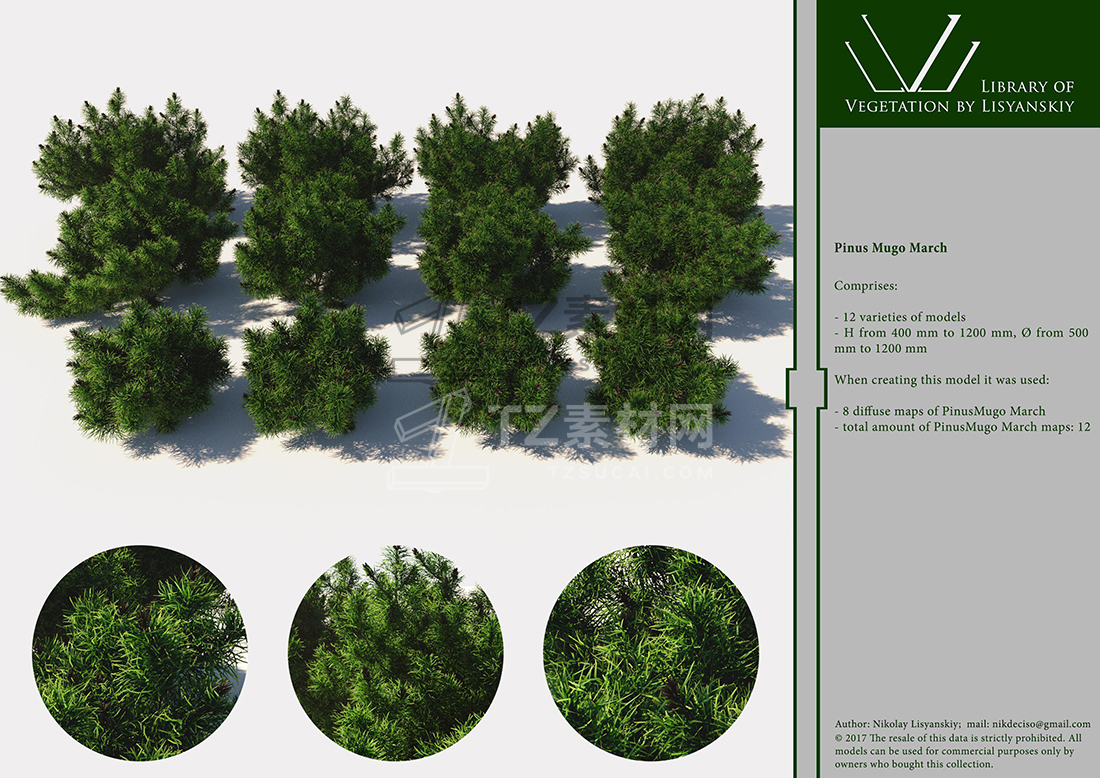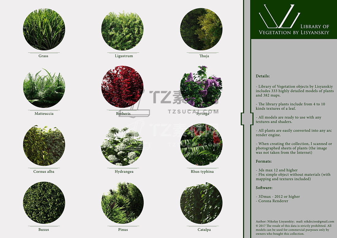 Lisyanskiy 网站的植物模型库第一期,max格式,花园,草地,灌木,小树模型