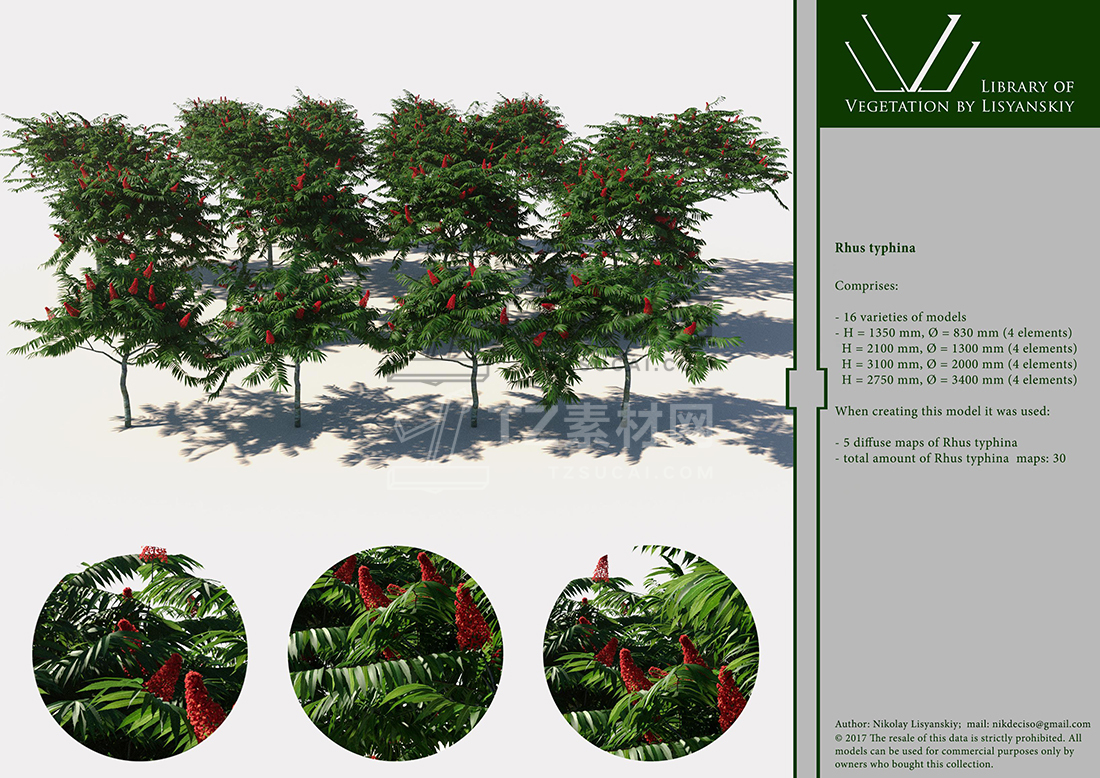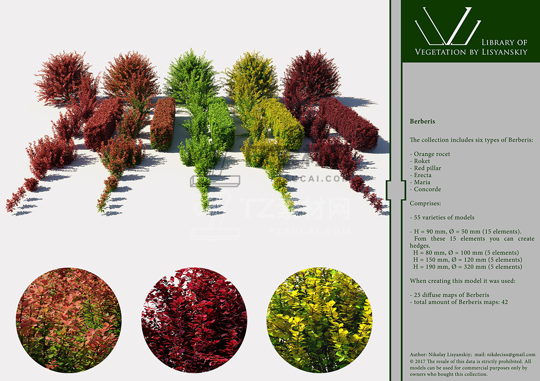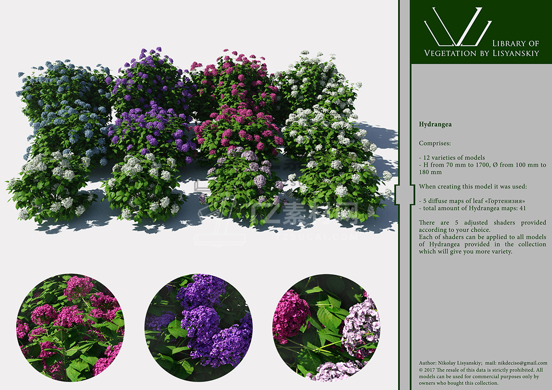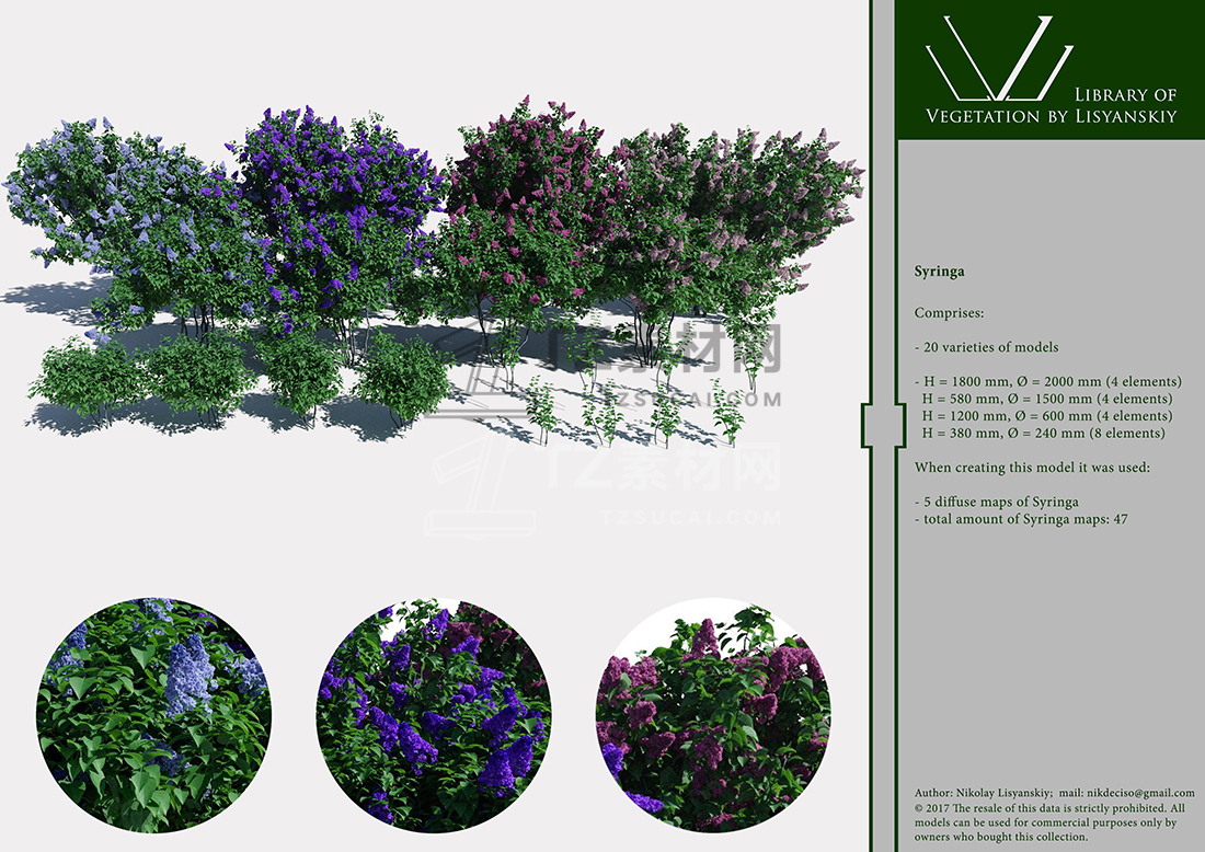 Lisyanskiy 网站的植物模型库第一期,max格式,花园,草地,灌木,小树模型