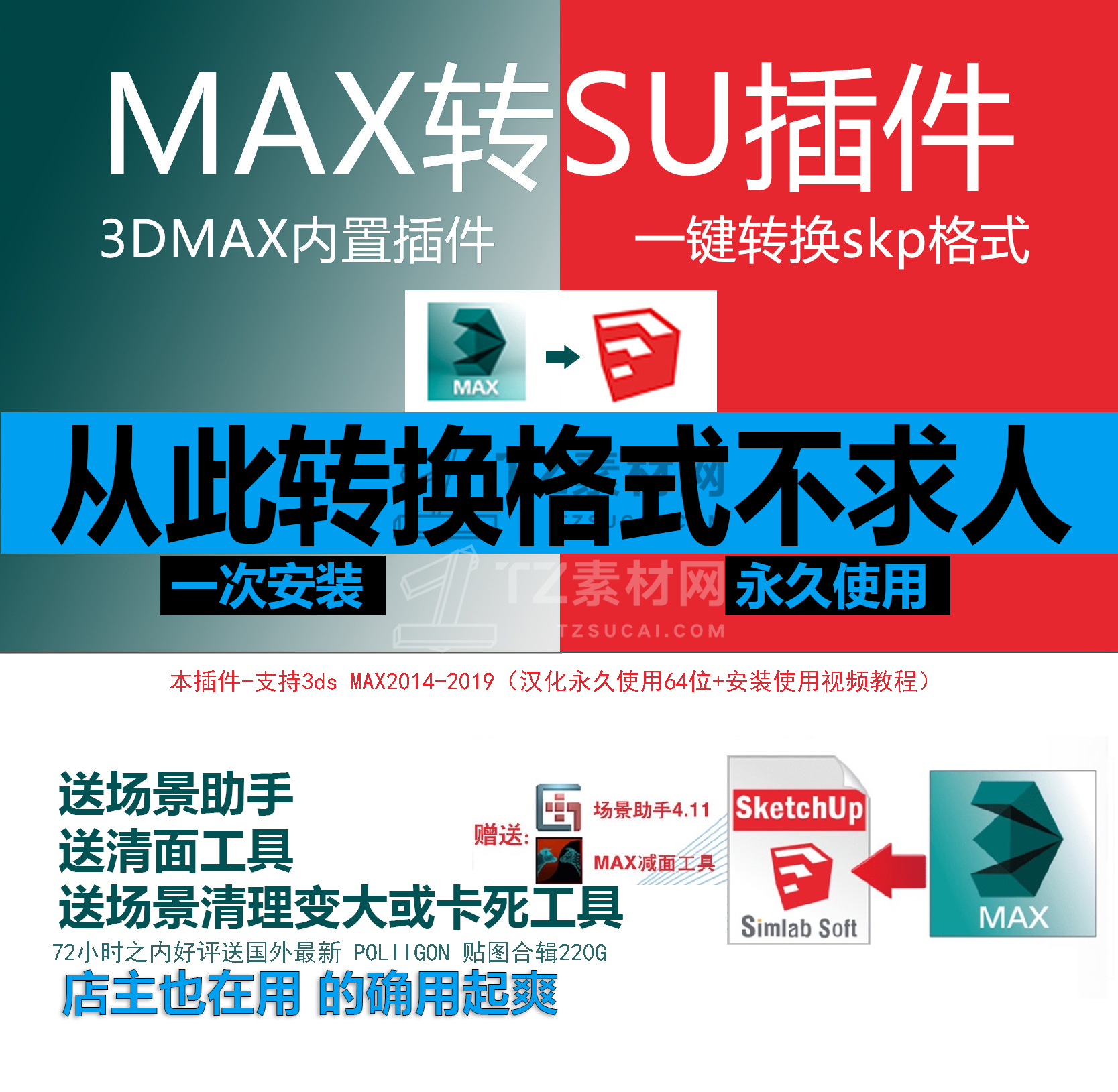 3DMAX插件,安装此插件必须先安装MAX 。支持MAX2013-2019版本, 转换成SKP格式