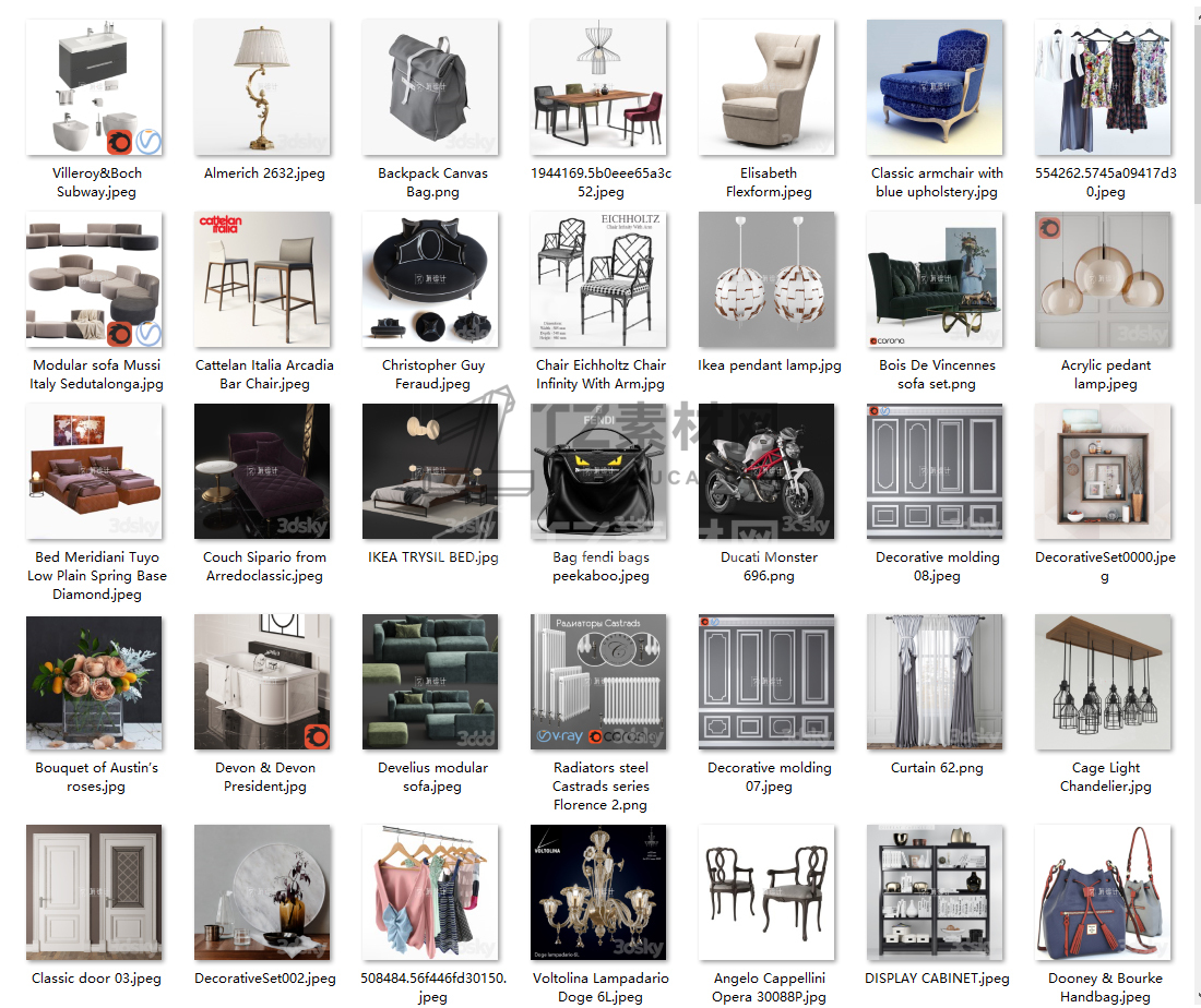 3ddd和3dsky的模型是一样的,一个是俄文版网站一个是英文版网站,不同系列的3ddd模型是不同人收集的,极少数模型可能有重复的。3ddd的模型除了max格式(vr材质)外,有部分还带有obj,fbx,max(cr材质)的模型。