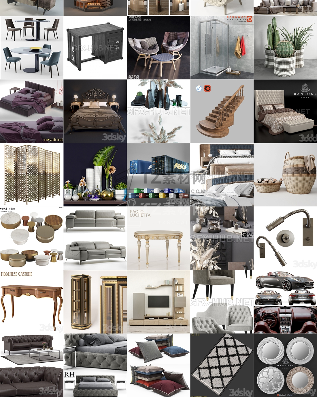3DDD/3DSky PRO models – August 1 2020Hi-Poly 3d-models | Furniture, decor, ligh e.t.c | 3ds Max | Vray | Corona | OBJ | FBX | ~125 pcs
