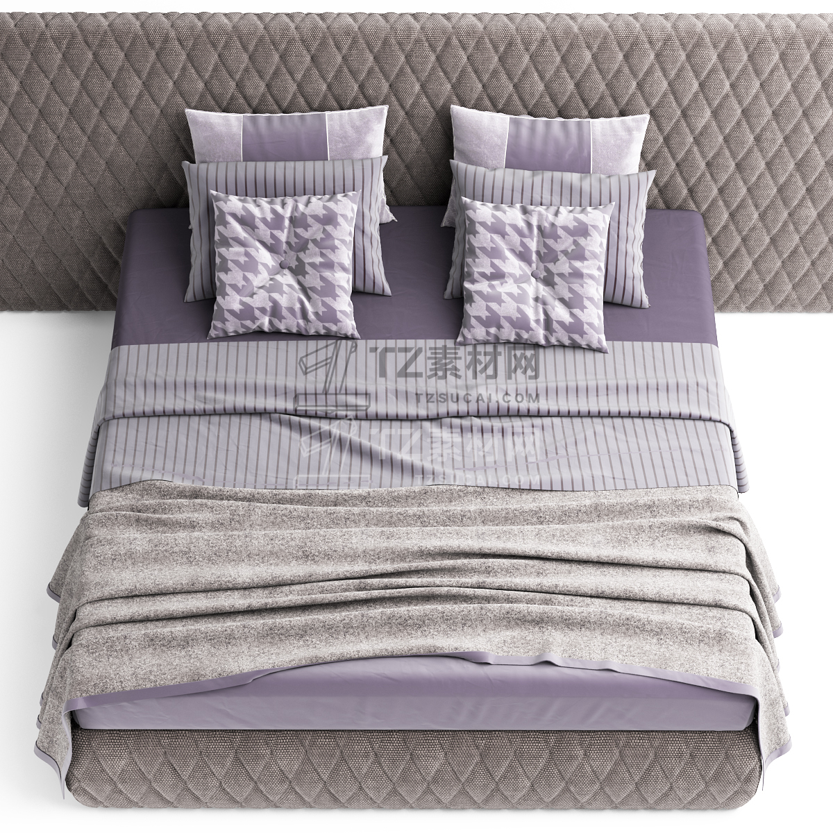现代布艺卧室双人床3dmax模型下载