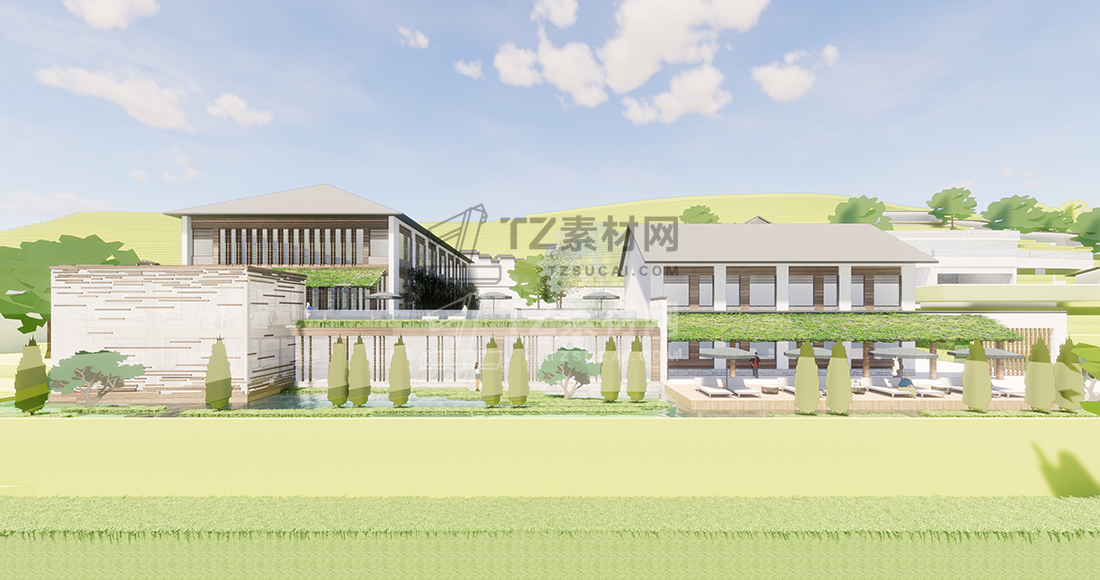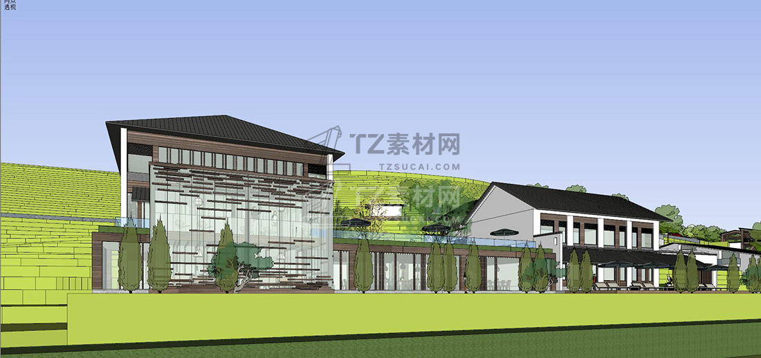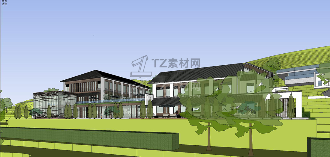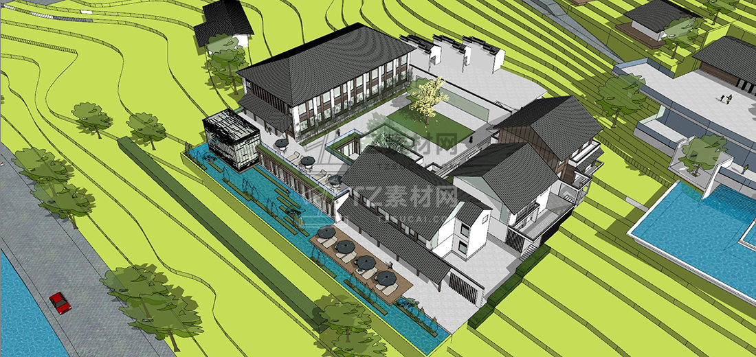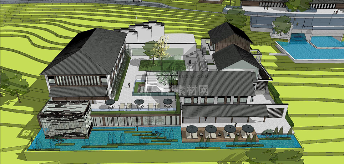 山地中式民宿草图大师模型