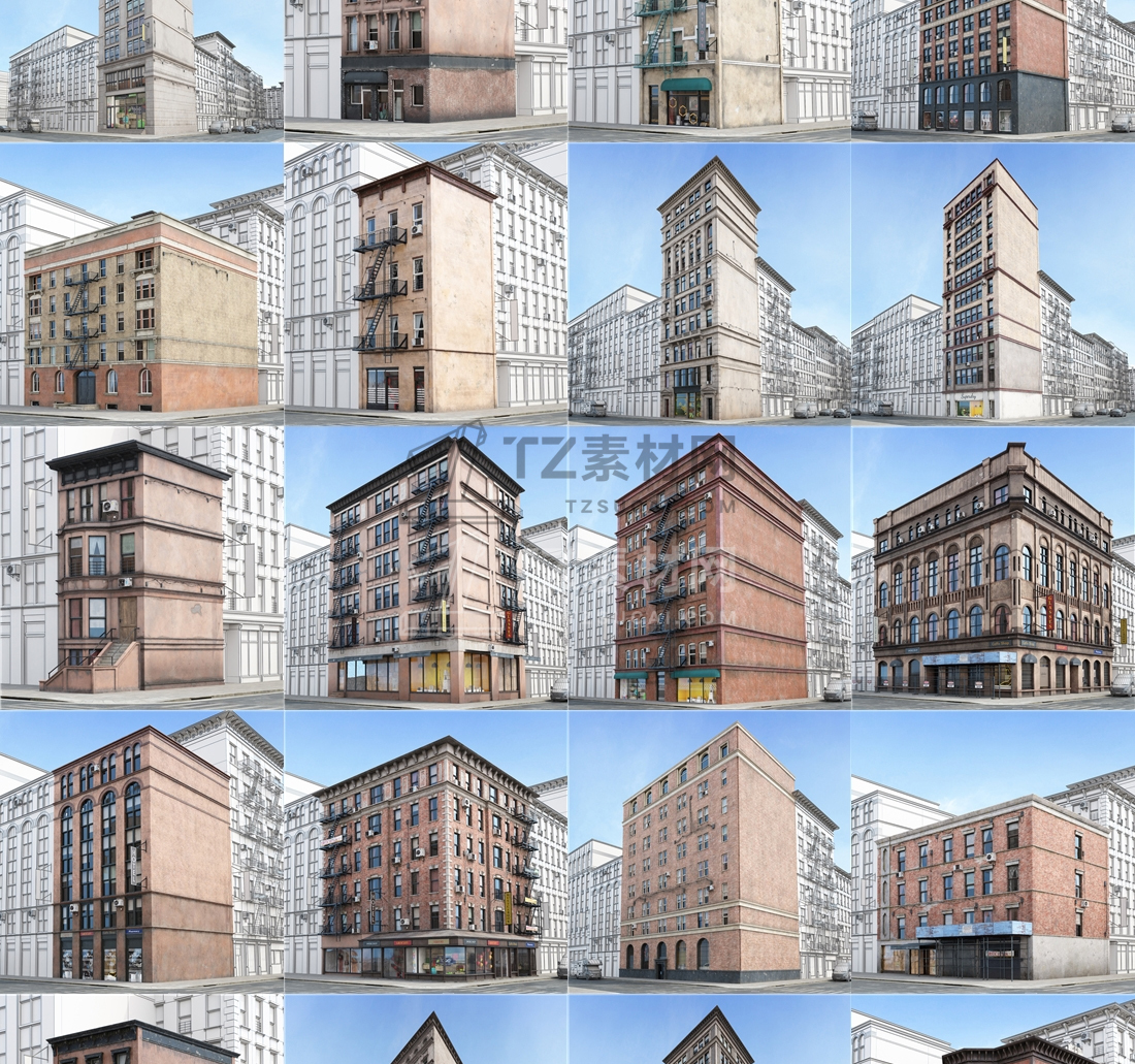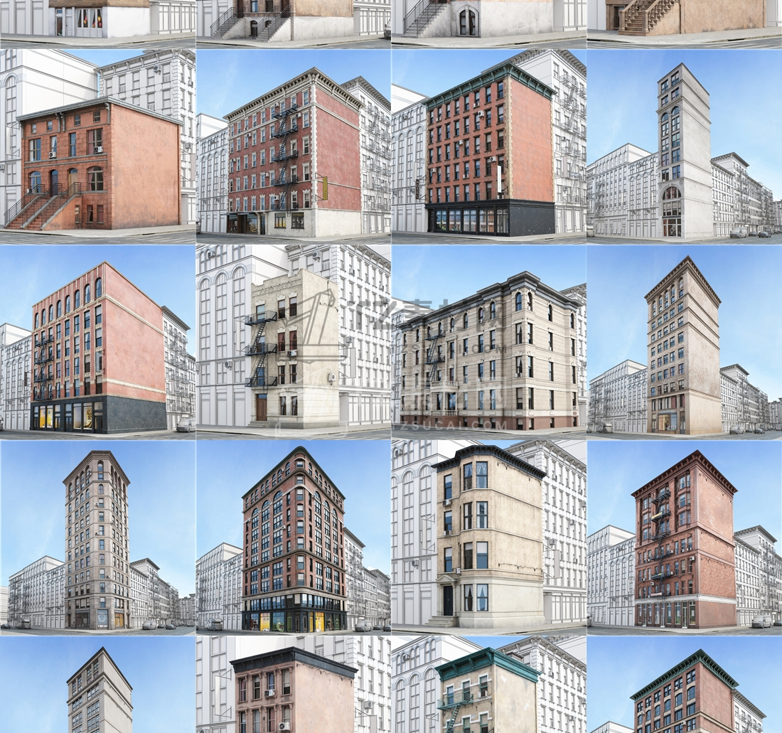 Archmodels vol. 215 includes 57 professional, highly detailed 3d models for architectural visualizations. This collection comes with 57 high quality models of New York style buildings with all textures and materials. All objects are ready to use in your visualizations.