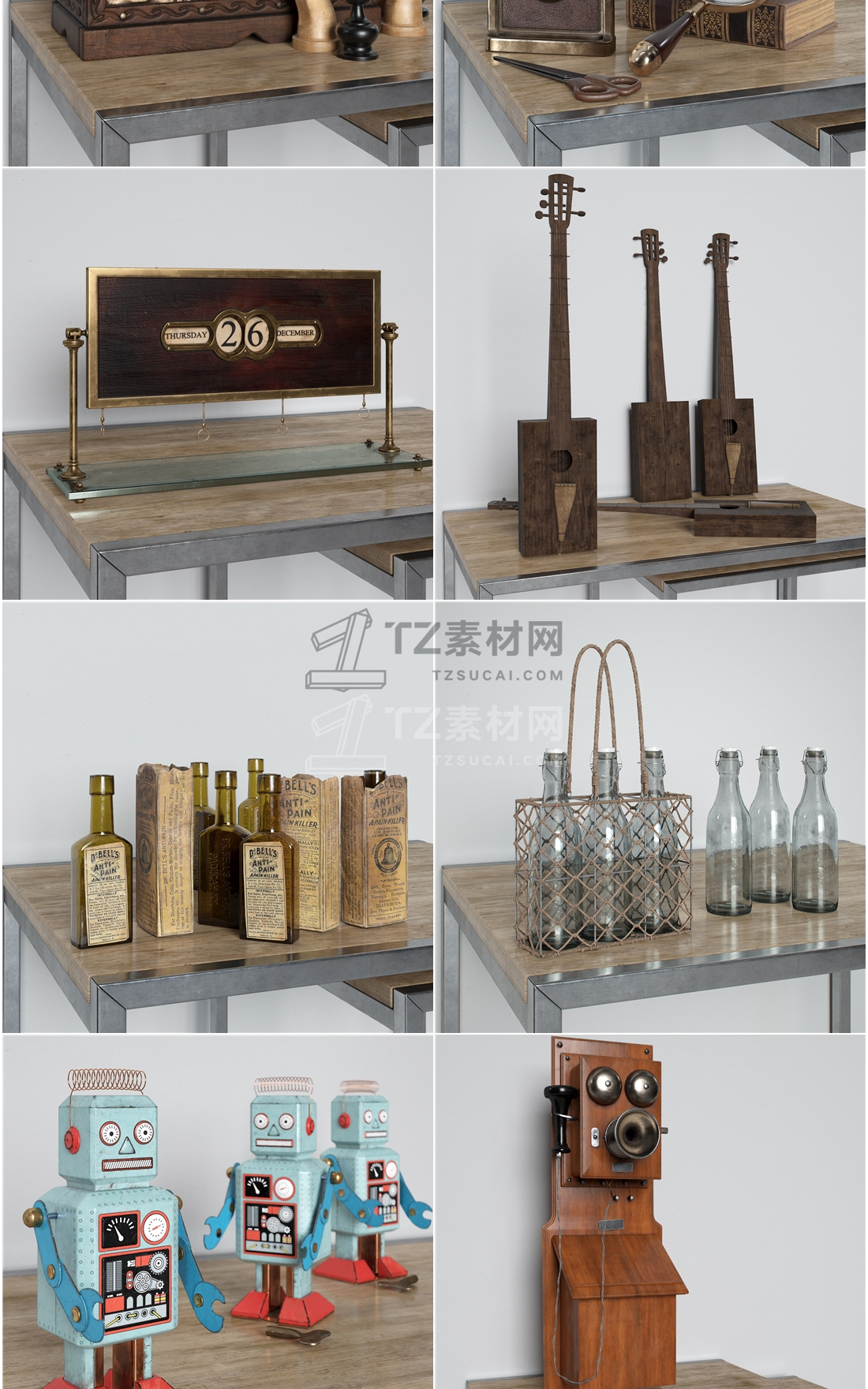 Archmodels vol. 194包括32个专业的、高度详细的建筑可视化3d模型。该系列包括32套复古道具、旧玩具、容器、眼镜、手机、留声机等。有了这个系列,你可以很容易地在你的内饰中创造一个古老、复古、优雅的外观。