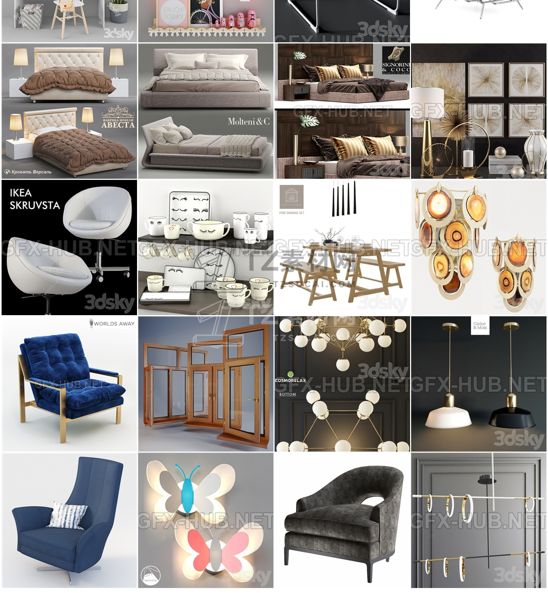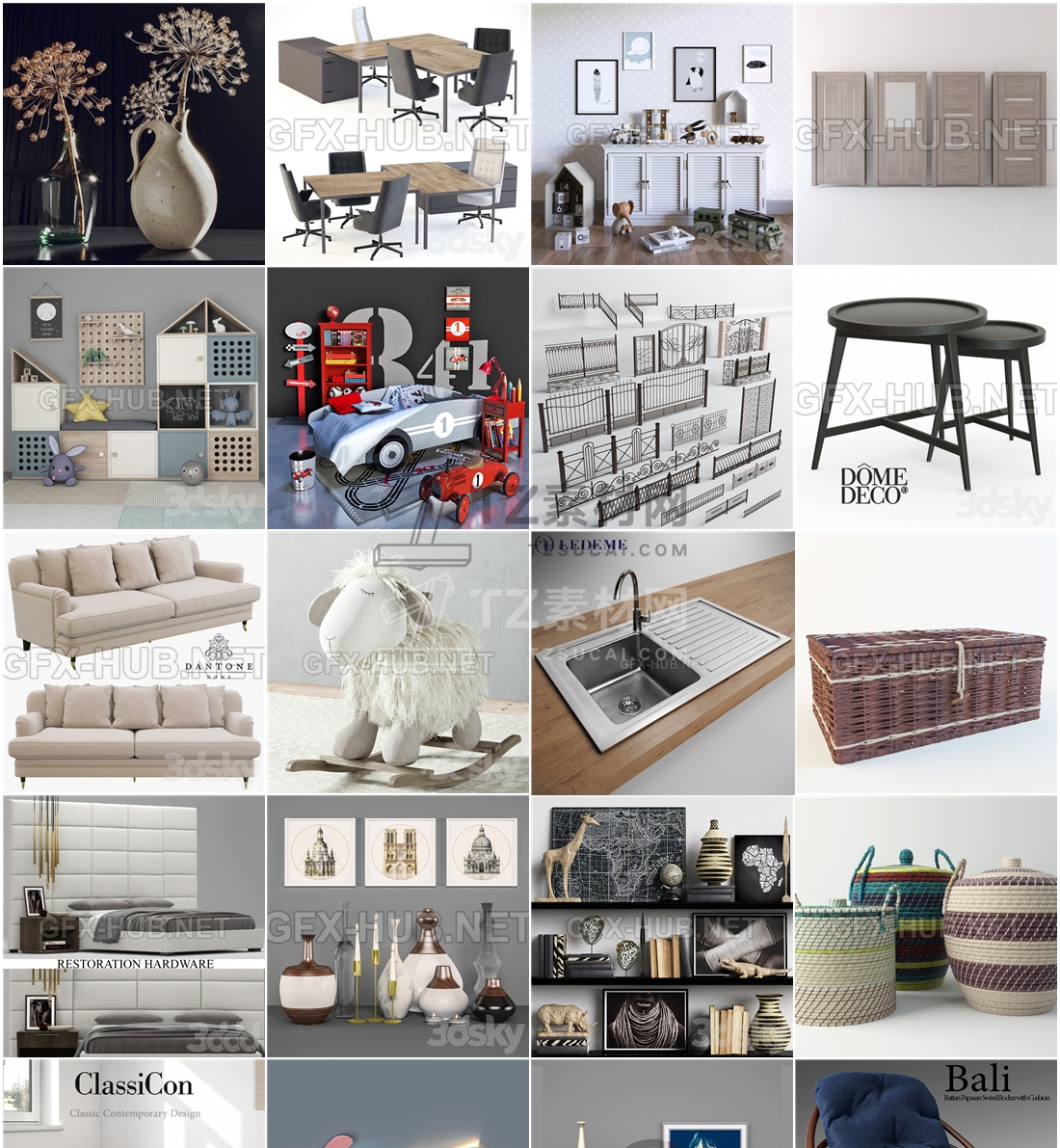 Hi-Poly 3d-models | Decor, toys, furniture, children room, other | 3ds Max | Vray | Corona | OBJ | FBX | 90+ pcs