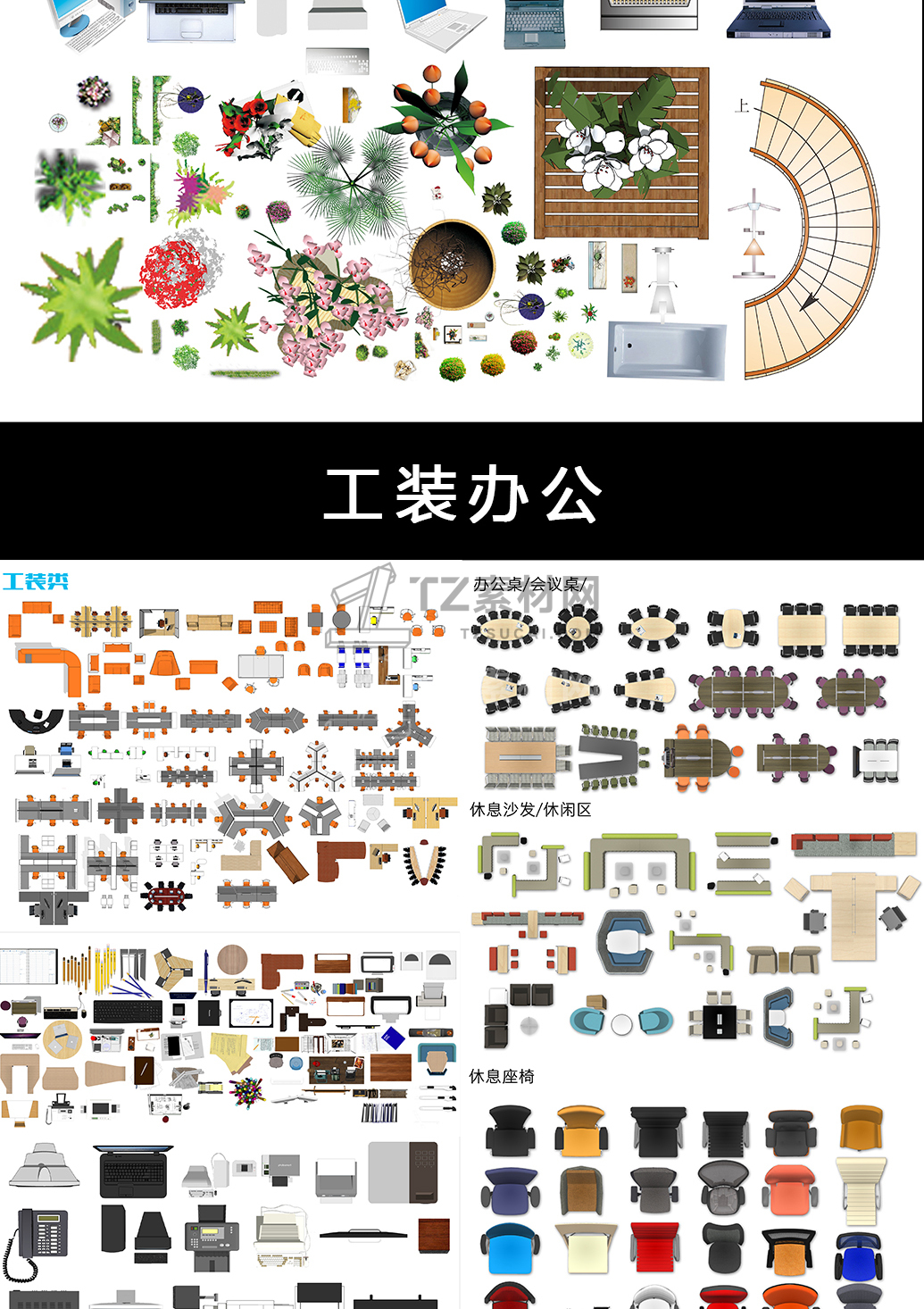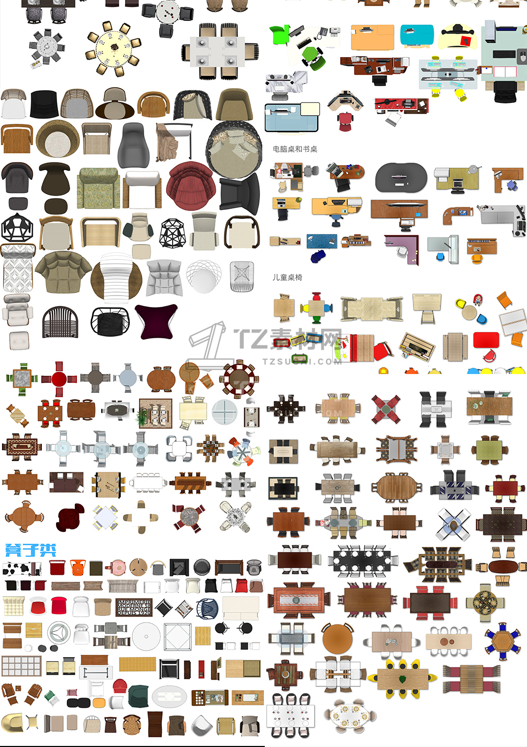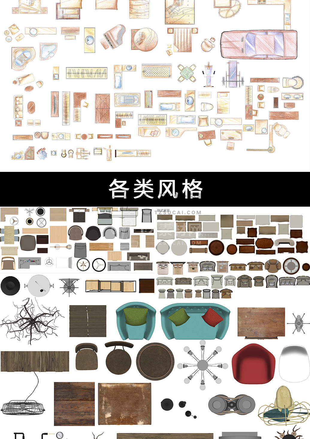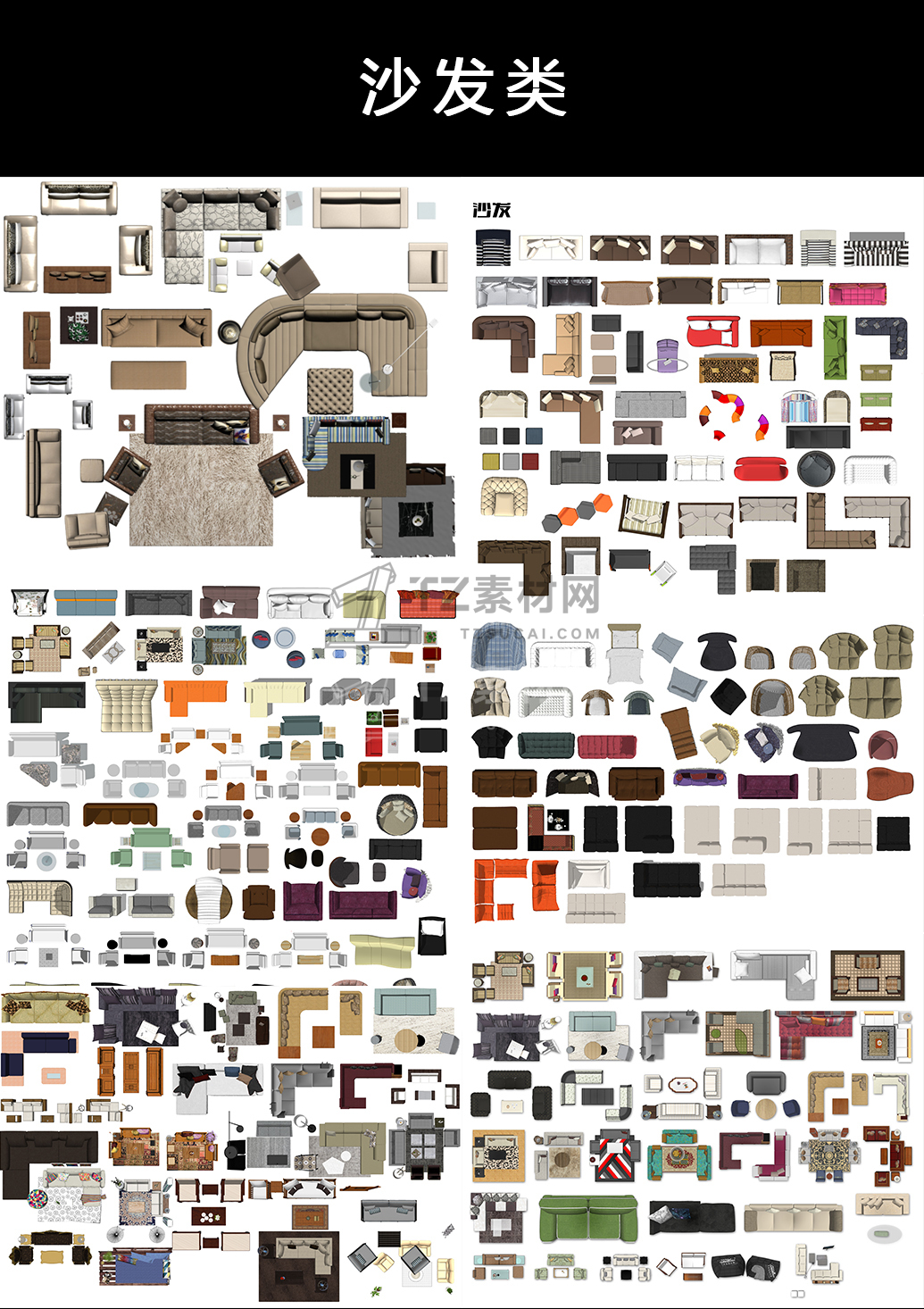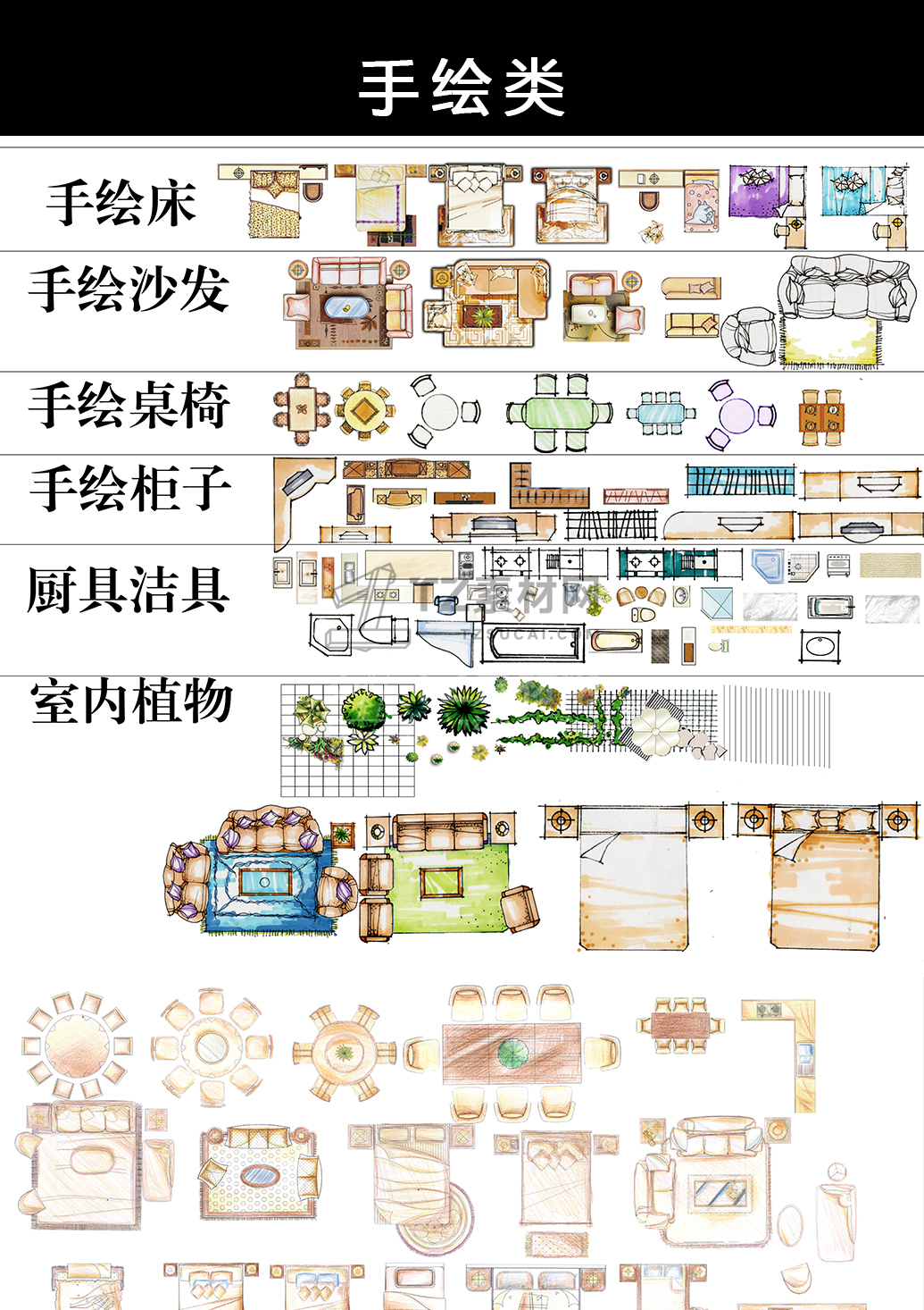 PS室内设计彩色平面图家装工装家具平面图块室内彩平图PSD素材