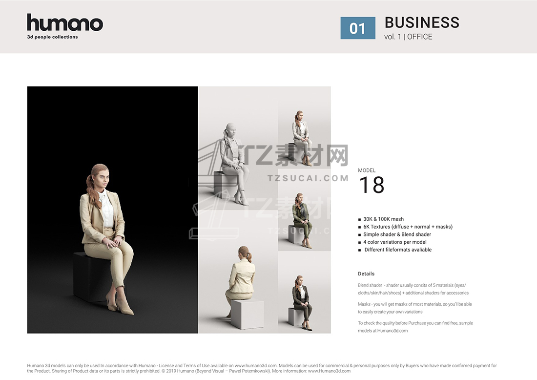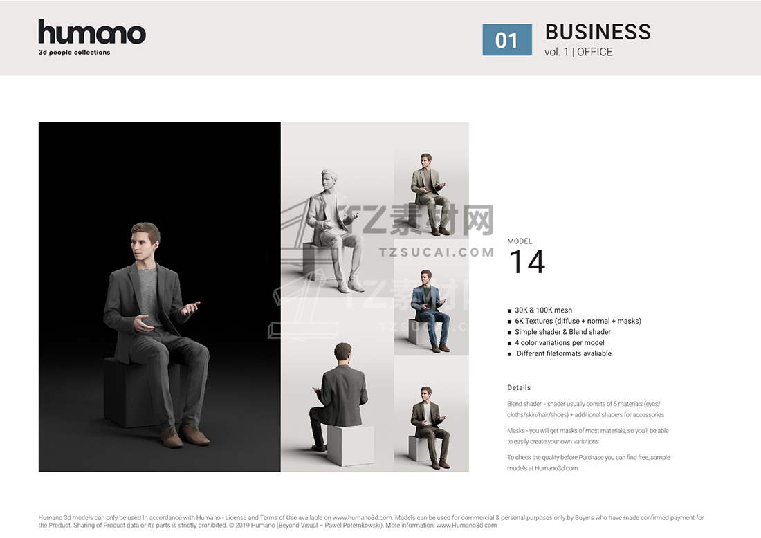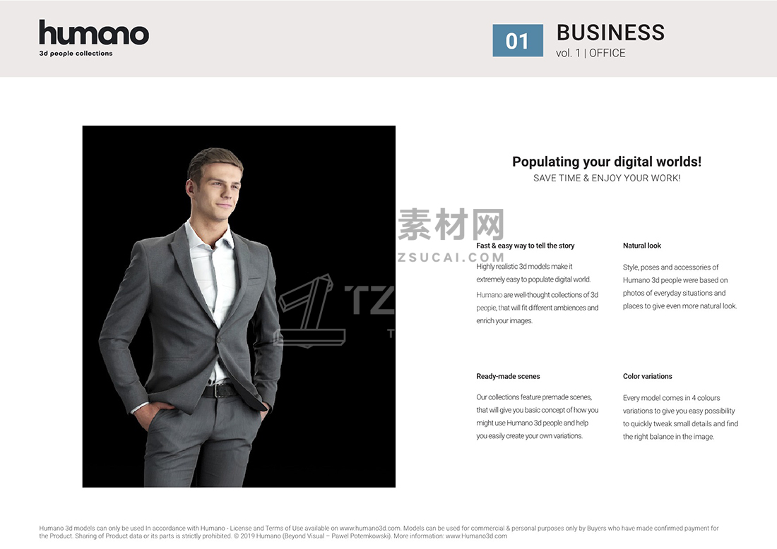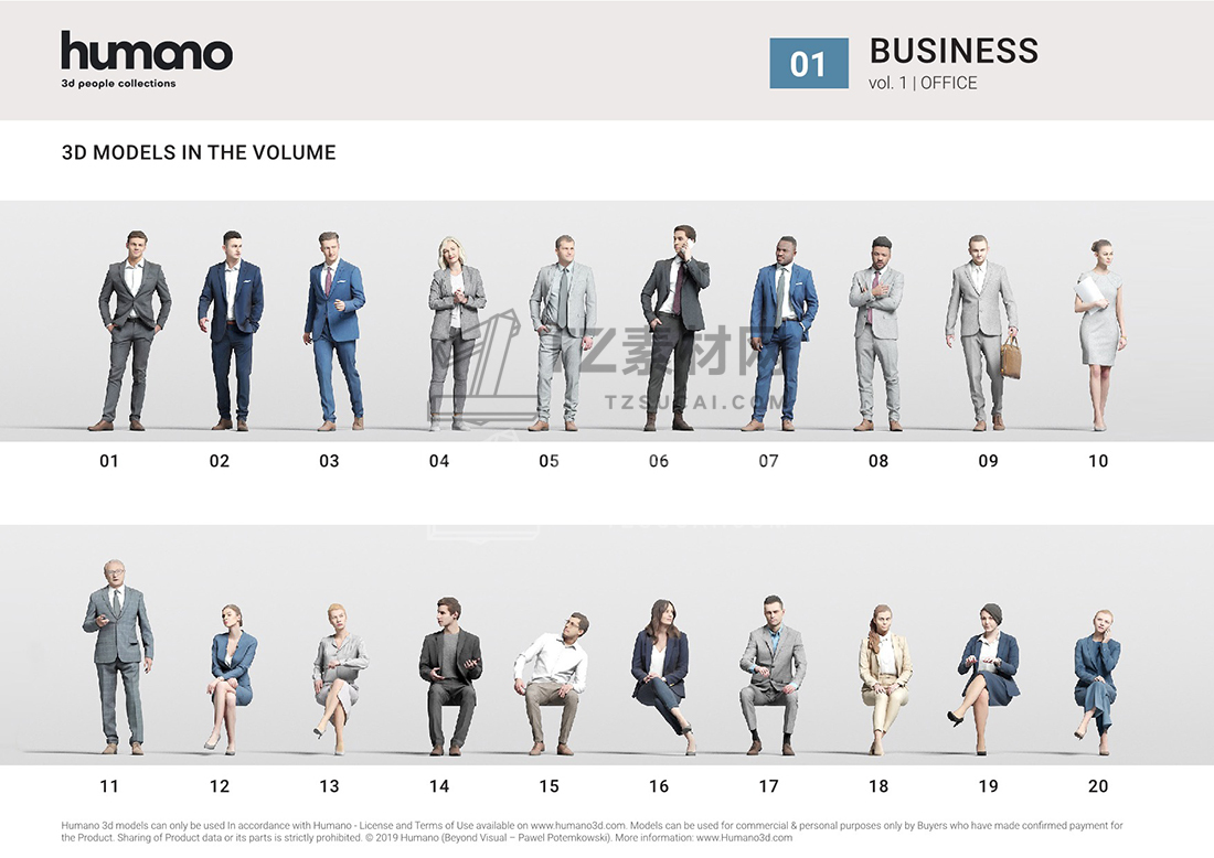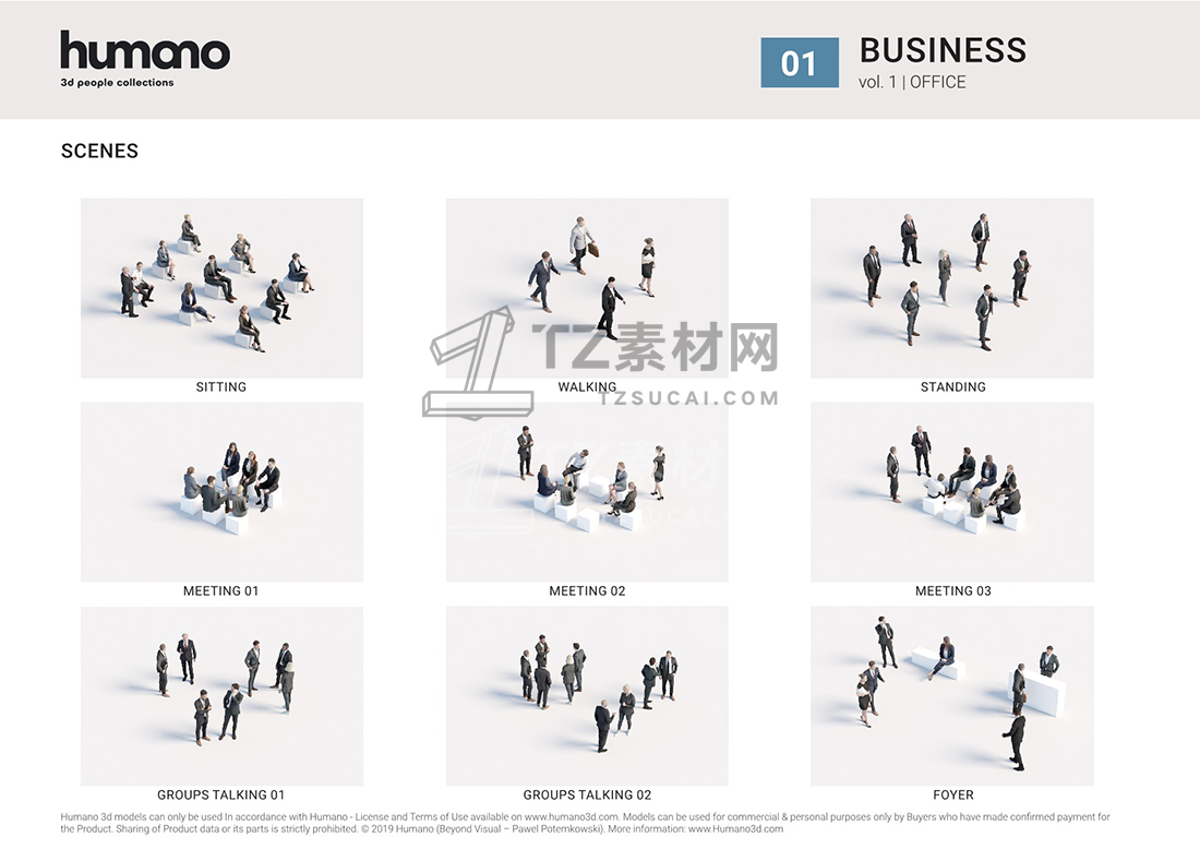 收集了20个有姿势的三维模型。你可以在附近舒适的街道上或者在新的住宅区遇到Humano Vol.01休闲3d人物。他们喜欢去购物,或者停下来和对方友好交谈。还有一些孩子!