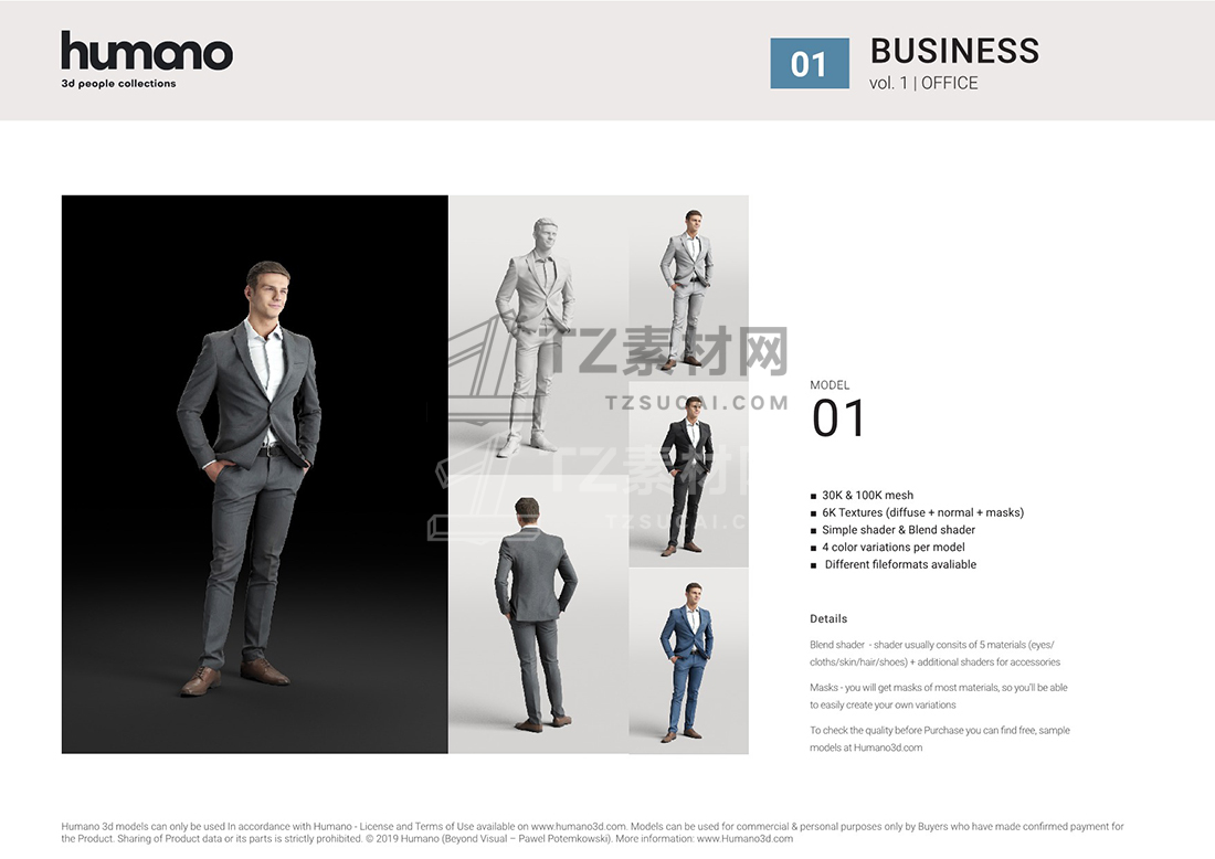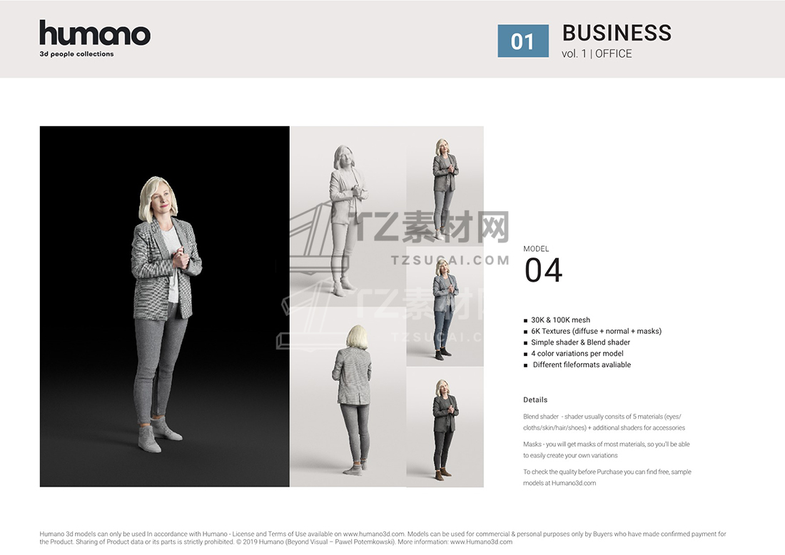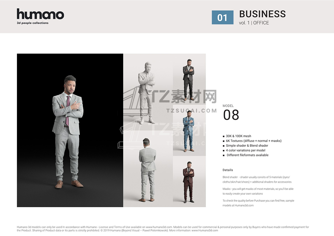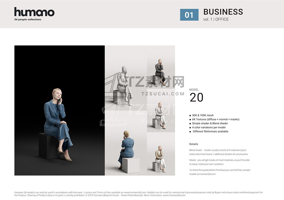 包含20个人物3D模型,6K分辨率贴图,每个角色有4中颜色预设,