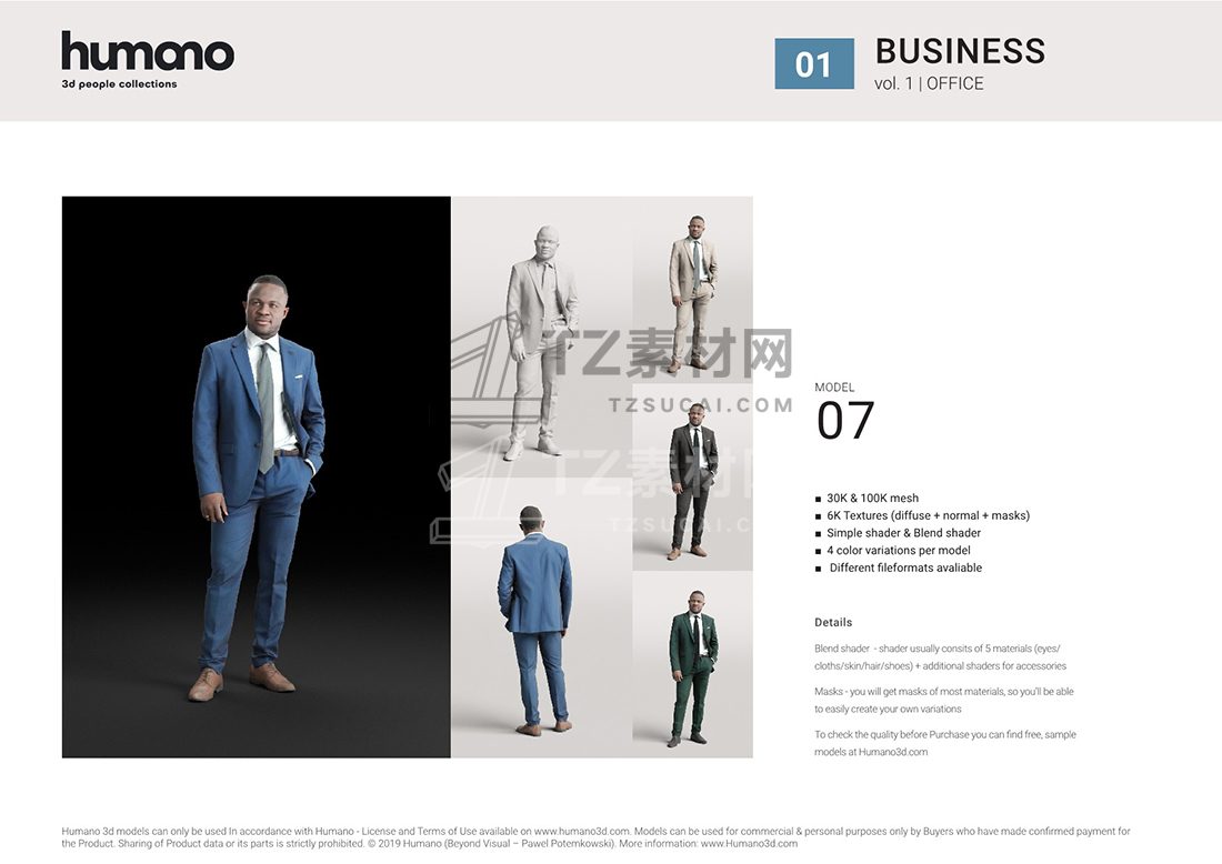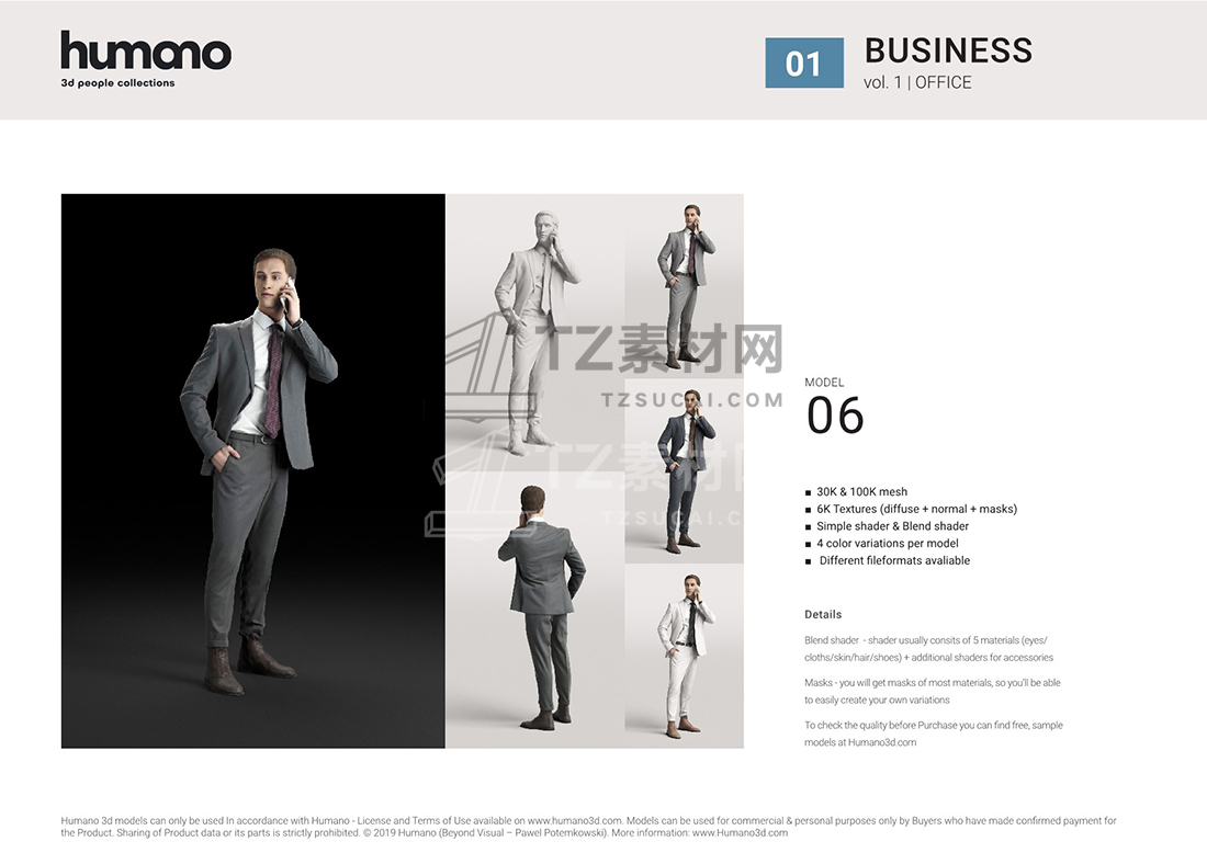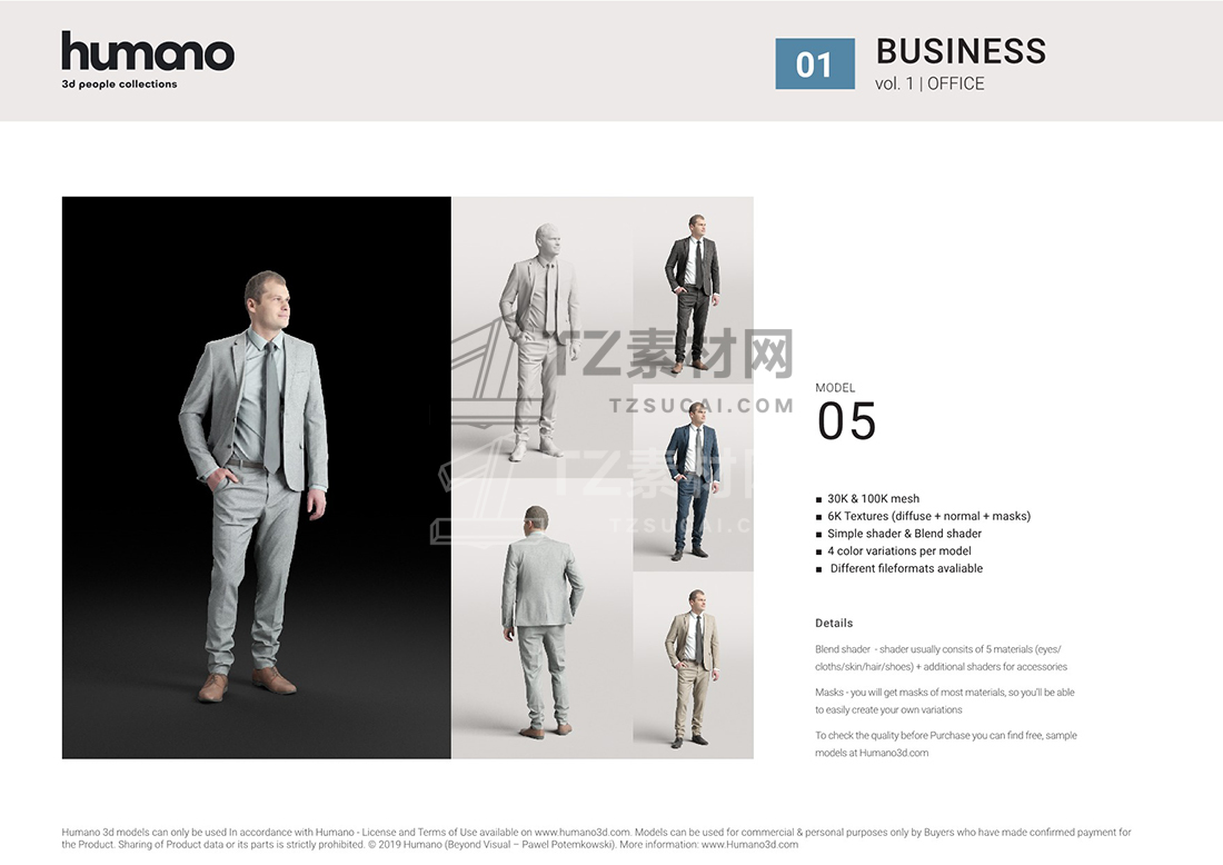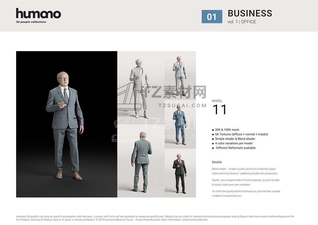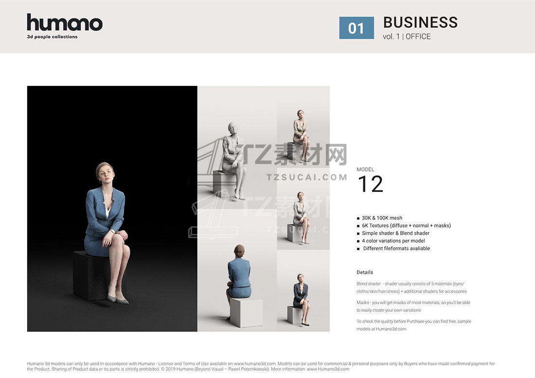包含20个人物3D模型,6K分辨率贴图,每个角色有4中颜色预设,