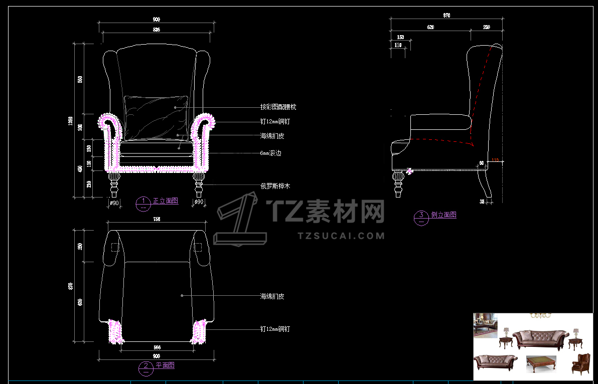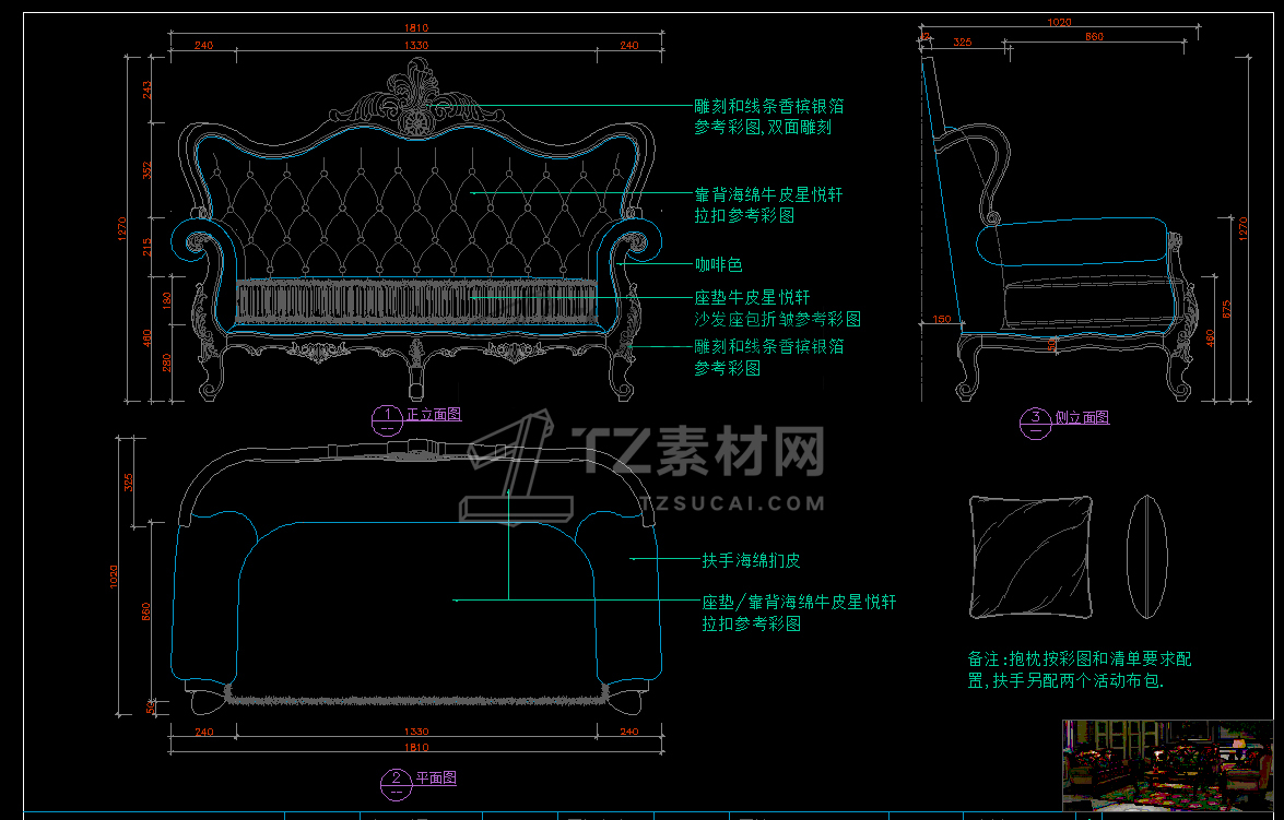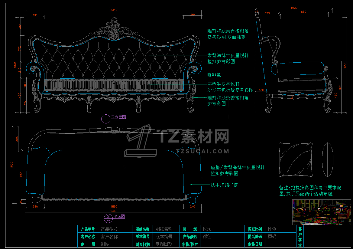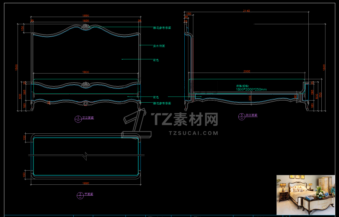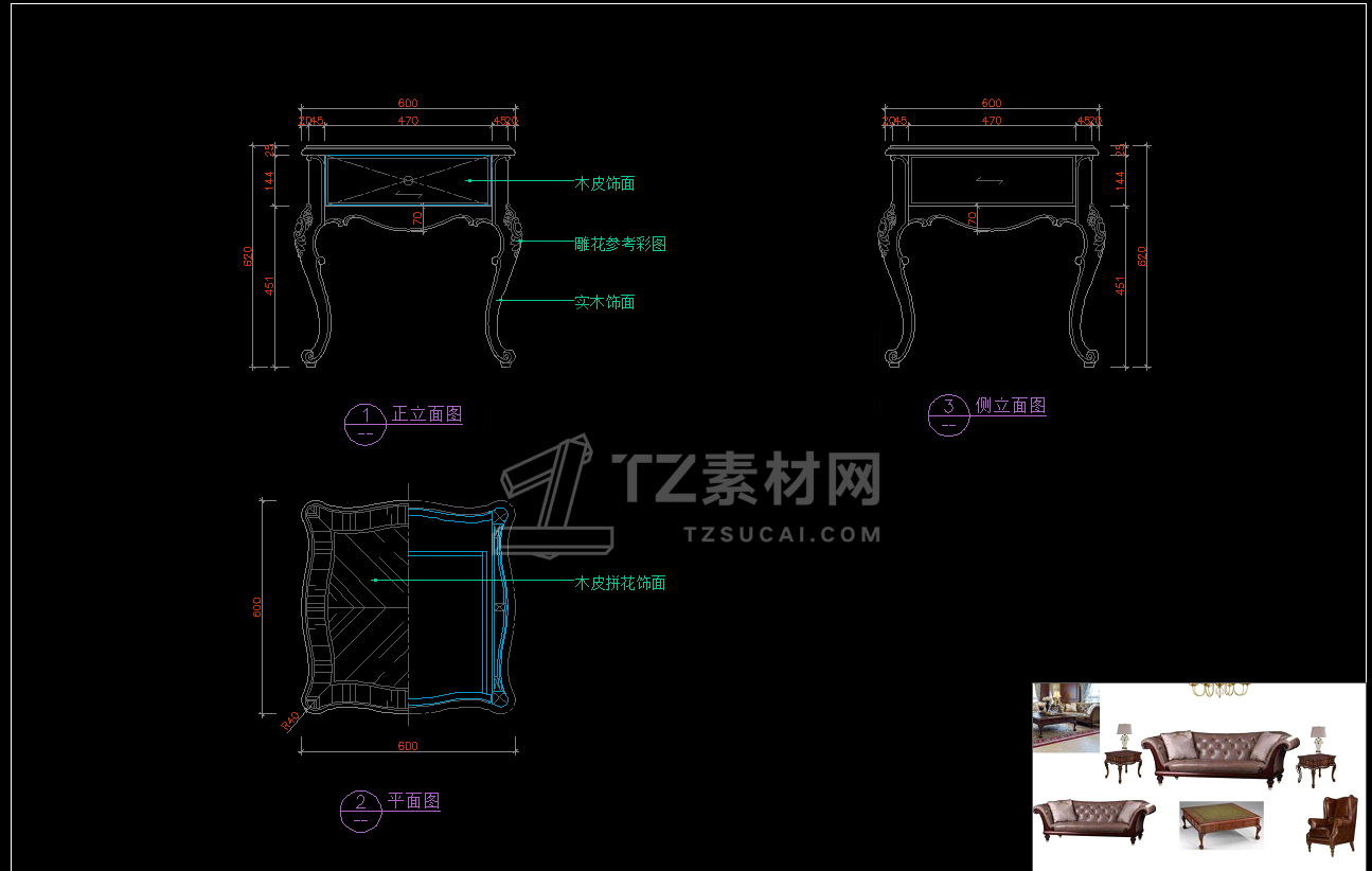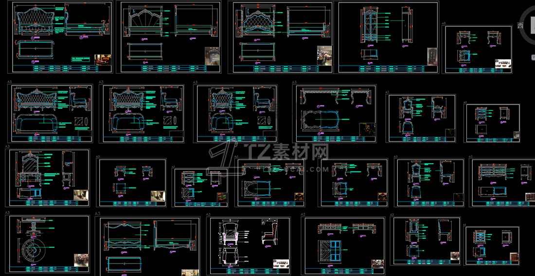美式家具CAD立面图库