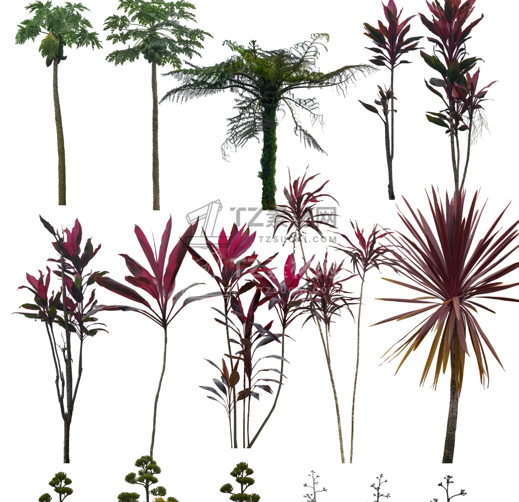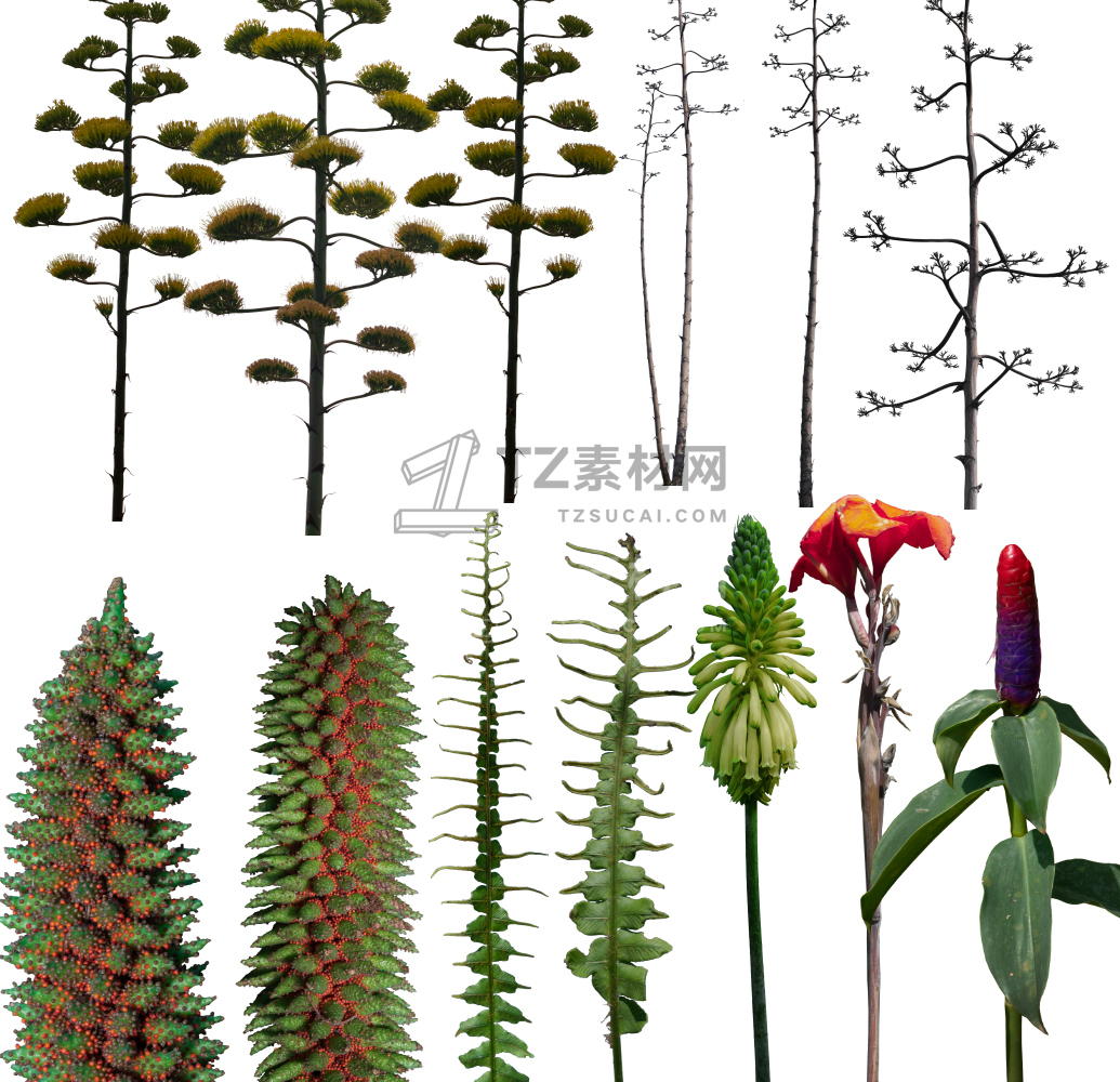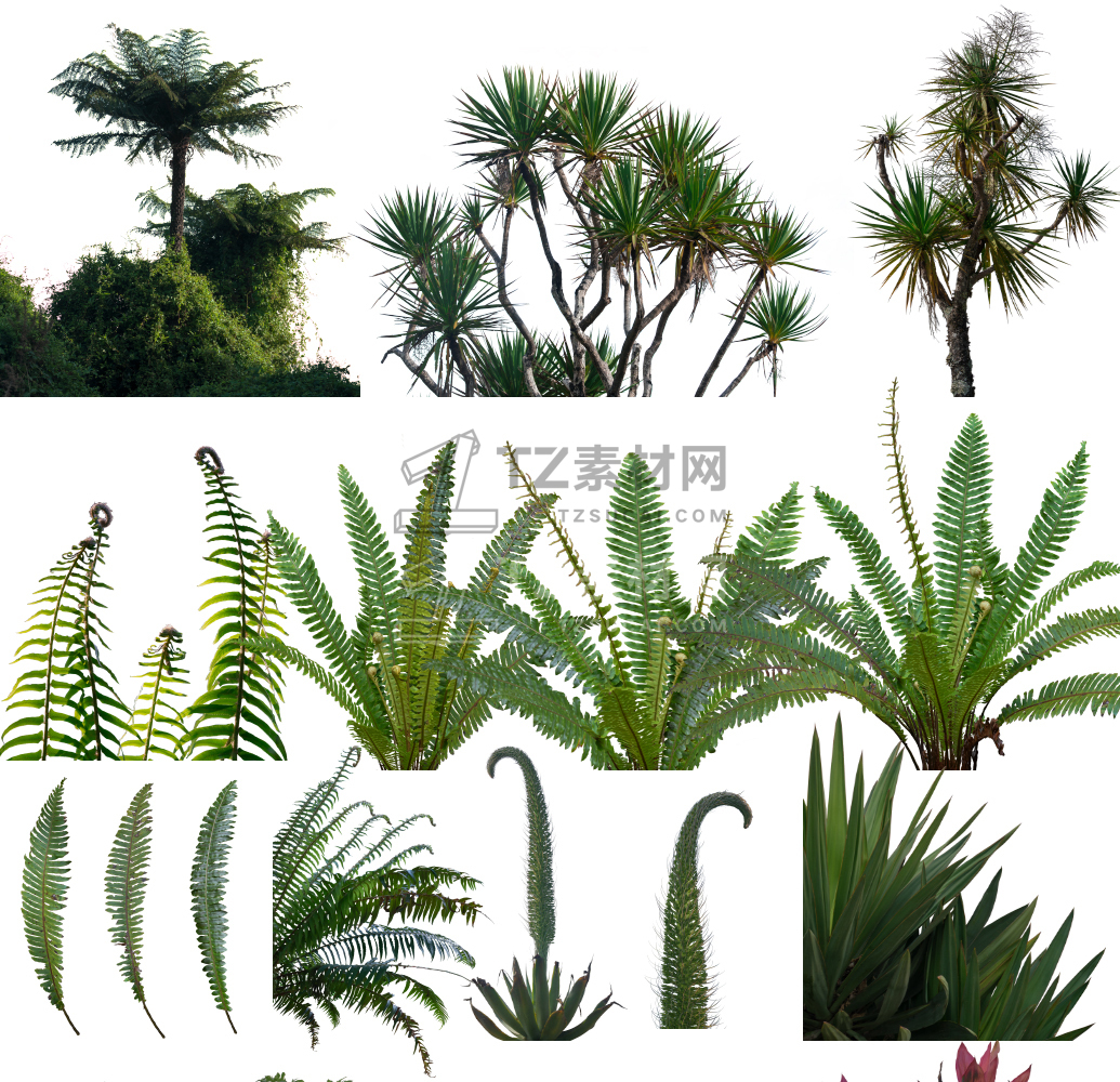 各种各样的植物、小树和其他树叶,灵感来自史前和超自然植物的美学。包括精选精心掩蔽的蕨类植物、棕榈树和五颜六色的热带水果和花卉。自定义形状包括快速生成有趣的植物轮廓。