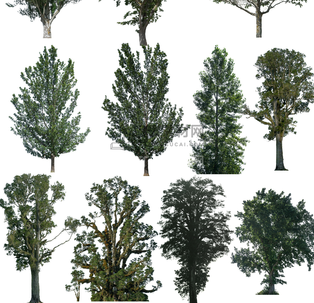 拖放各种落叶树种的免抠图层。具有全尺寸的树和分支的细节。非常适合后期和概念设计使用。