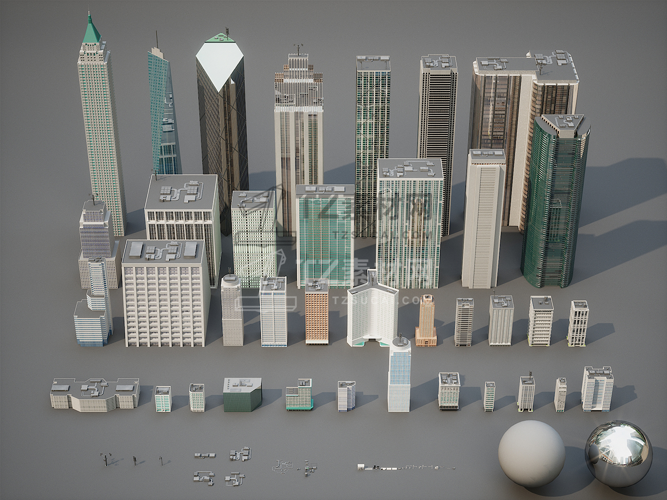 包含37个城市街道楼房建筑3D模型,包含3DS MAX/Maya/OBJ/FBX格式,包含基础贴图,没有展UV