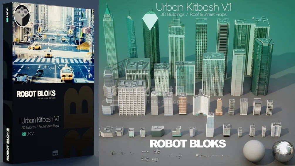 城市楼房建筑3D模型 Gumroad – ROBOT BLOCKS Urban Kitbash V1 (MAX/Maya/OBJ/FBX格式)