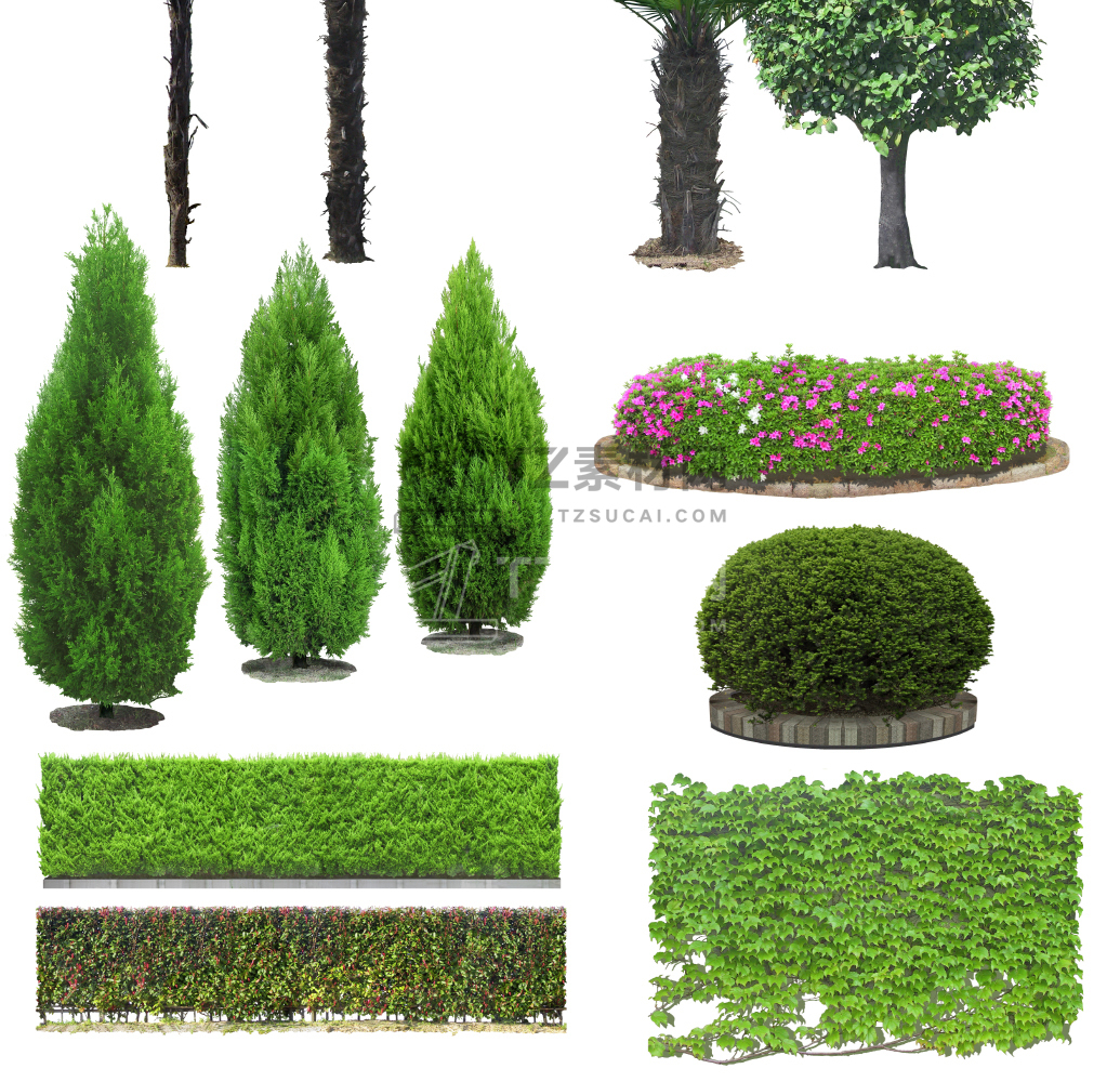 整理好的一组高清的植物免抠素材,每个植物都是单独的PSD,树枝和树干都是分层的,颜色都可以单独调整
