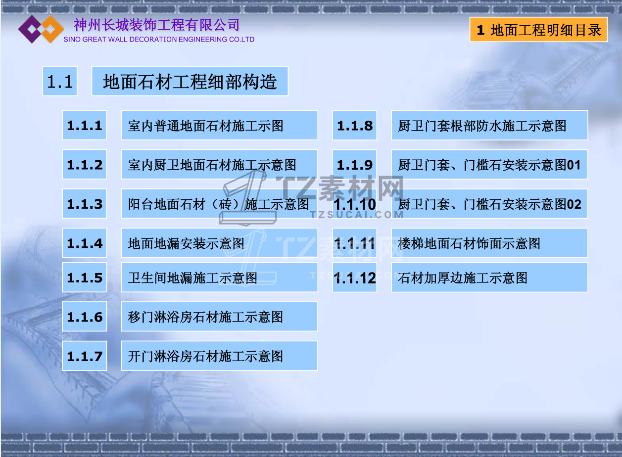 该图集2011年内部发出试行版,发展至今仍然在精装修业内屹立不倒,并且很多知名地产将其套用修改成为企业内部标准,先看一下目录预览