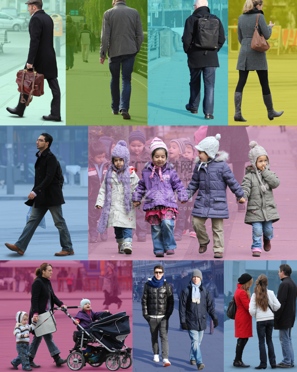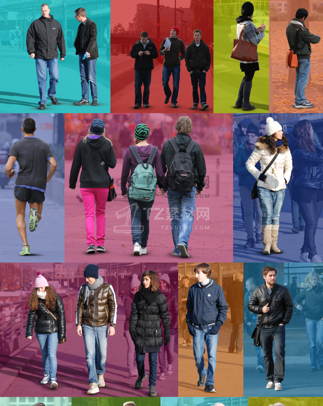 Xoio people –冬季商业街道人物 ,它包含19个TIF格式源文件(导入PS含图层)各姿态人物免抠高清素材。