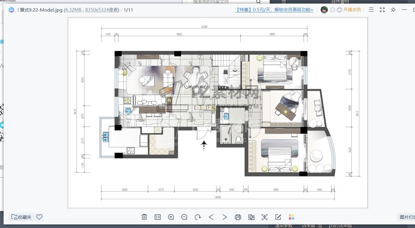 有了这个材质贴图,还需要看教程嘛?只要你会用ps,你就能完完整整的做一套漂亮的彩平图,图片过大,只能这样上传了,下面是我做的一些作品!