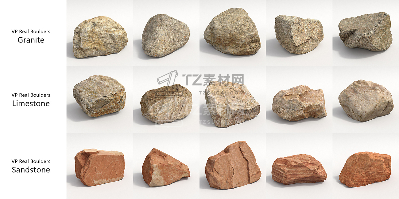 15个石头3D模型,3DS MAX格式,包含贴图材质