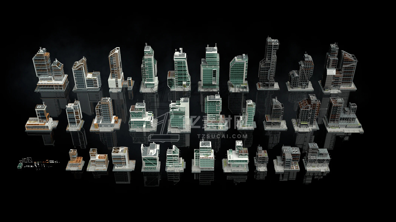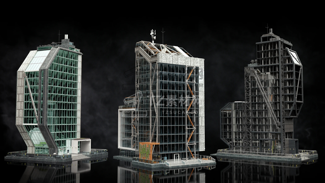 建设任何现代或新兴的大都市,有三个不同的纹理包可供选择,并有一系列大胆的工业形式。无论您是设想一个配有透明玻璃覆层和木质装饰的购物中心,还是用反光的青色玻璃和拉丝金属建造一个原始的生物技术校园,还是用深色玻璃和黑色钢材建造一个宏伟的金融区,这款充满活力的套件都将为您所有当代或未来的城市带来创新的优势。