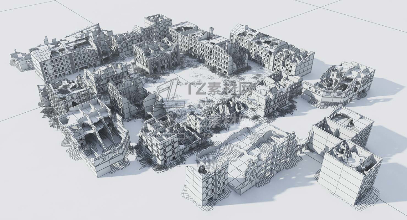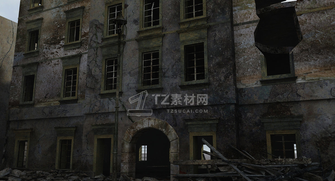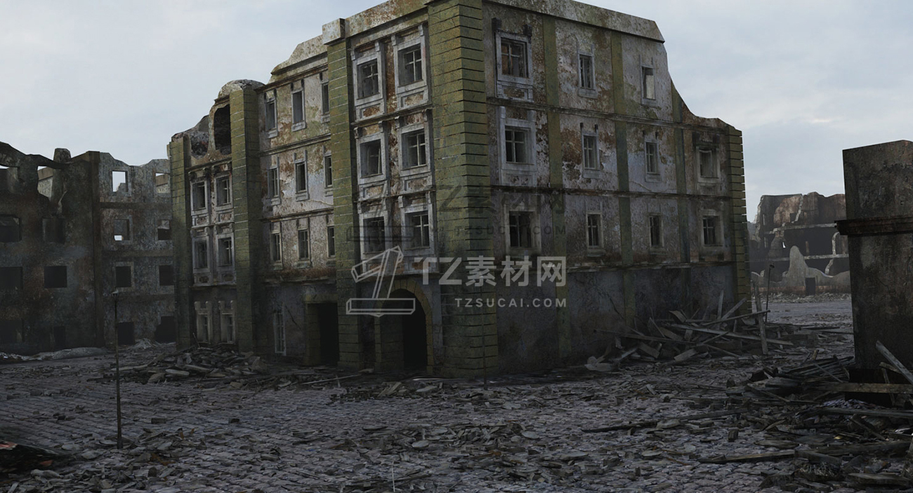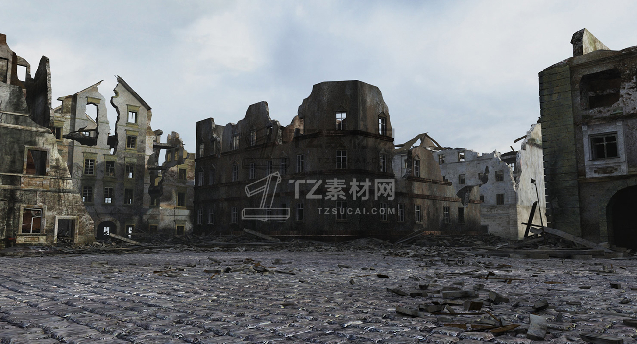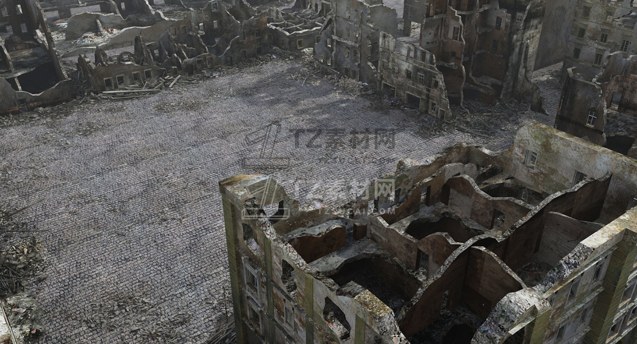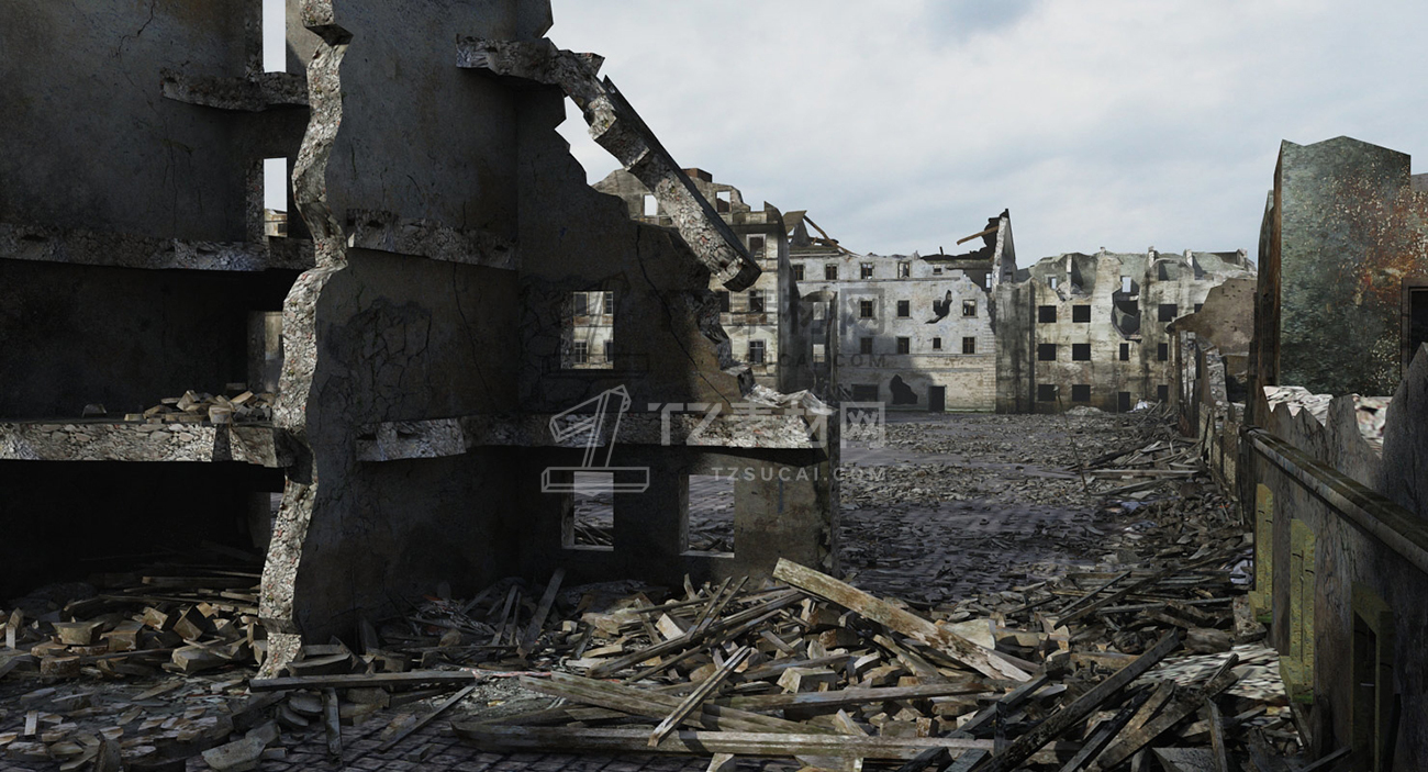 This is very accurate scene of destroyed city. Based on photos of ruined Warsaw (bombed and burned by German in 1939 and 1945).