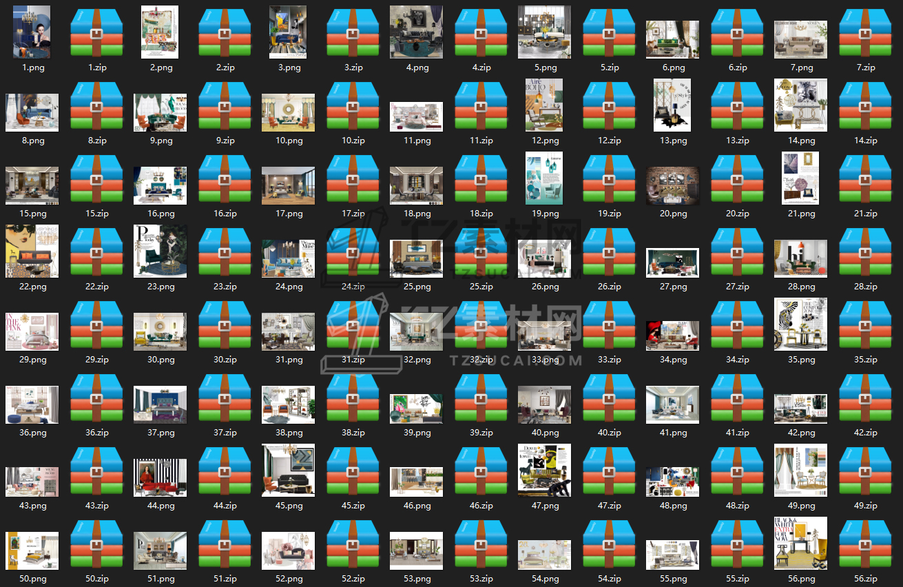 每套拼贴方案,含有单独的家具/软装图片(格式JPG)