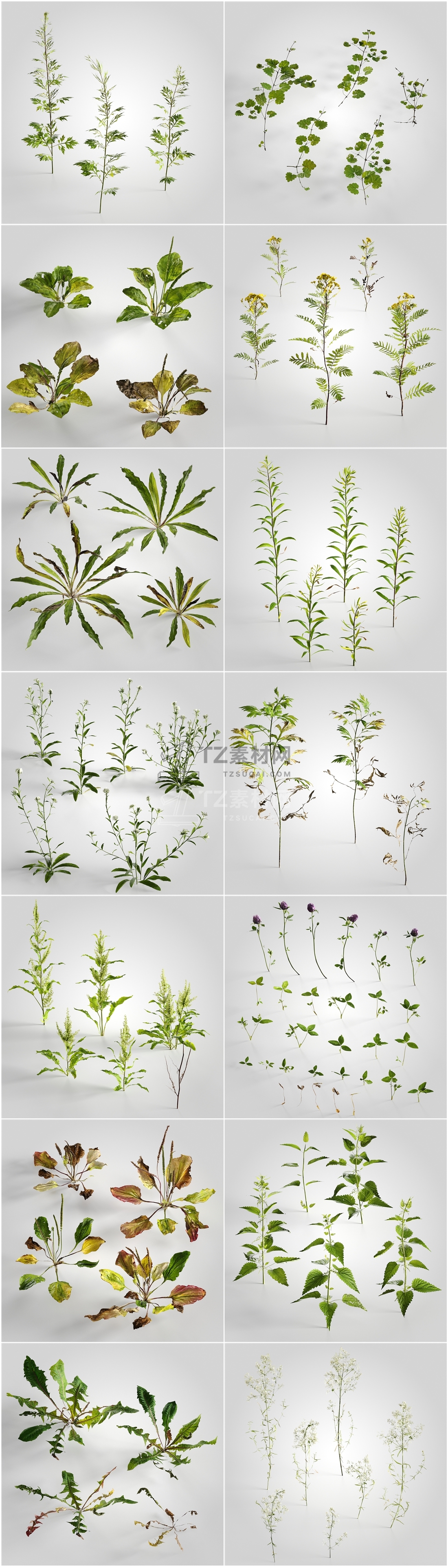 Archmodels第226卷包括14套用于建筑可视化的专业、高质量的3d模型。该系列配有低面数植物模型(avarage 2000 tris)和3d扫描纹理。每套至少包括3种不同的植物变种。在这里,你会发现一些来自草地的小物种,如康尼扎、蒿属、加利属、酸模属、皂荚属、三叶、车前草、凤尾草、贝特鲁阿、塔那切姆、蒲公英和荨麻。所有对象都可以在可视化中使用。
