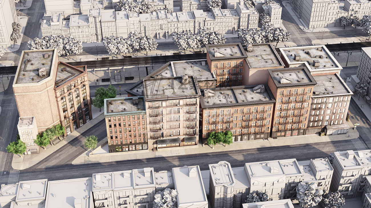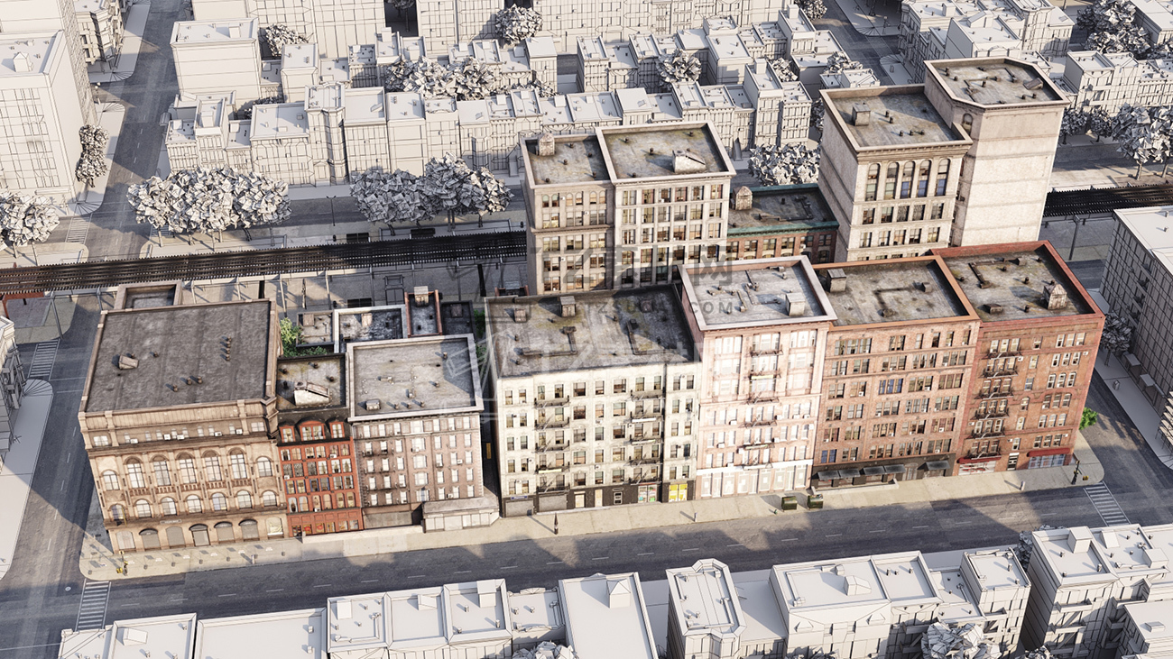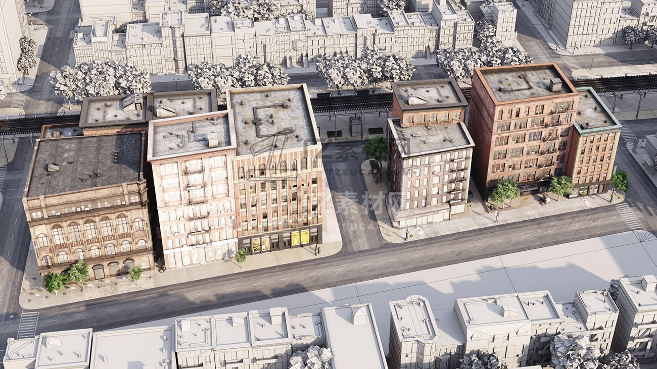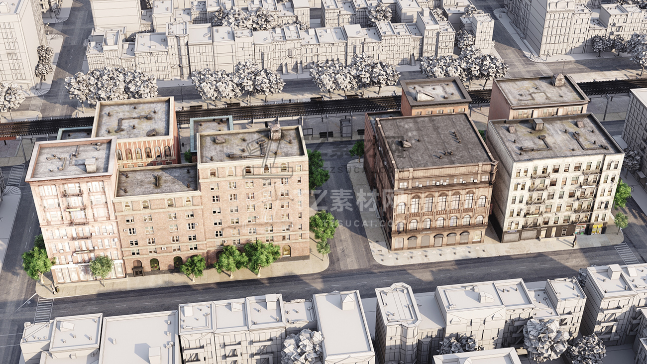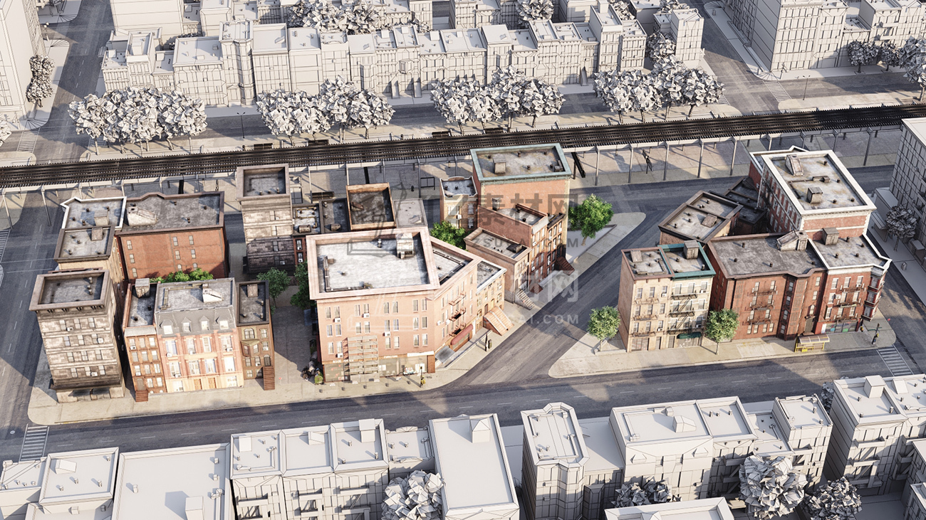 包括14套附加模型的人行道,树木,城市道具和街道。