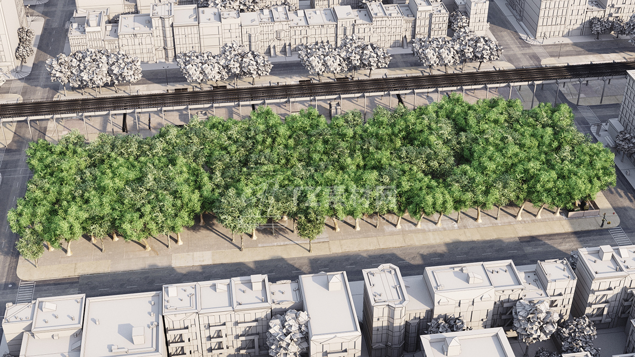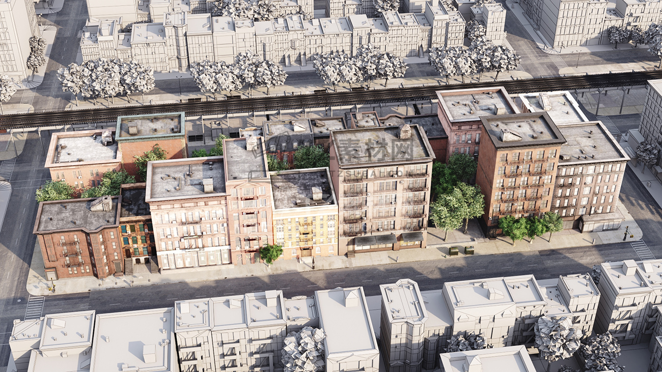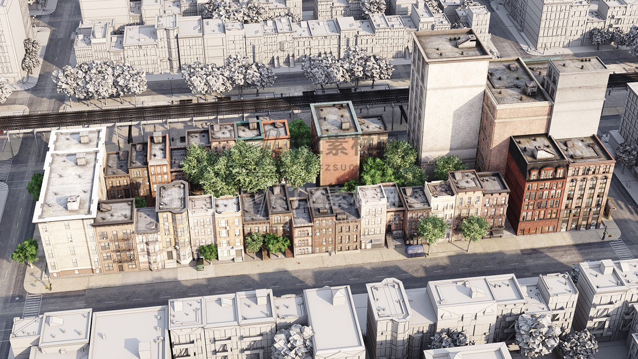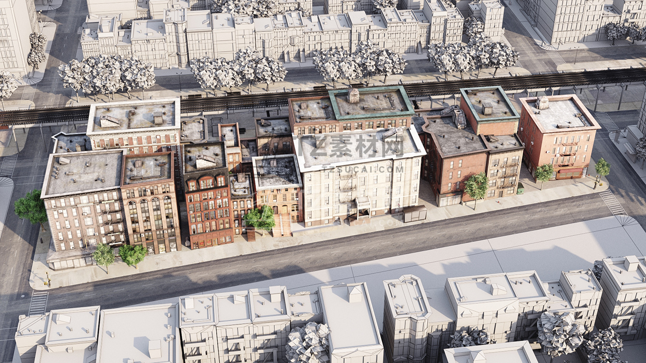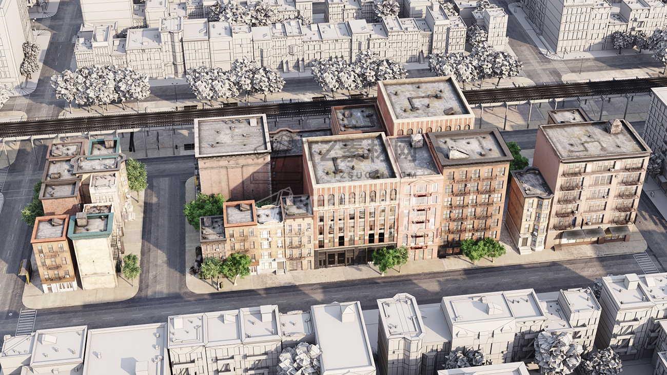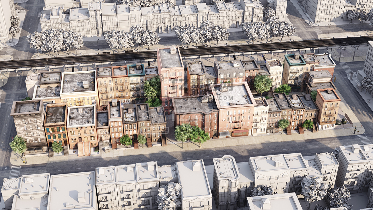 包括14套附加模型的人行道,树木,城市道具和街道。