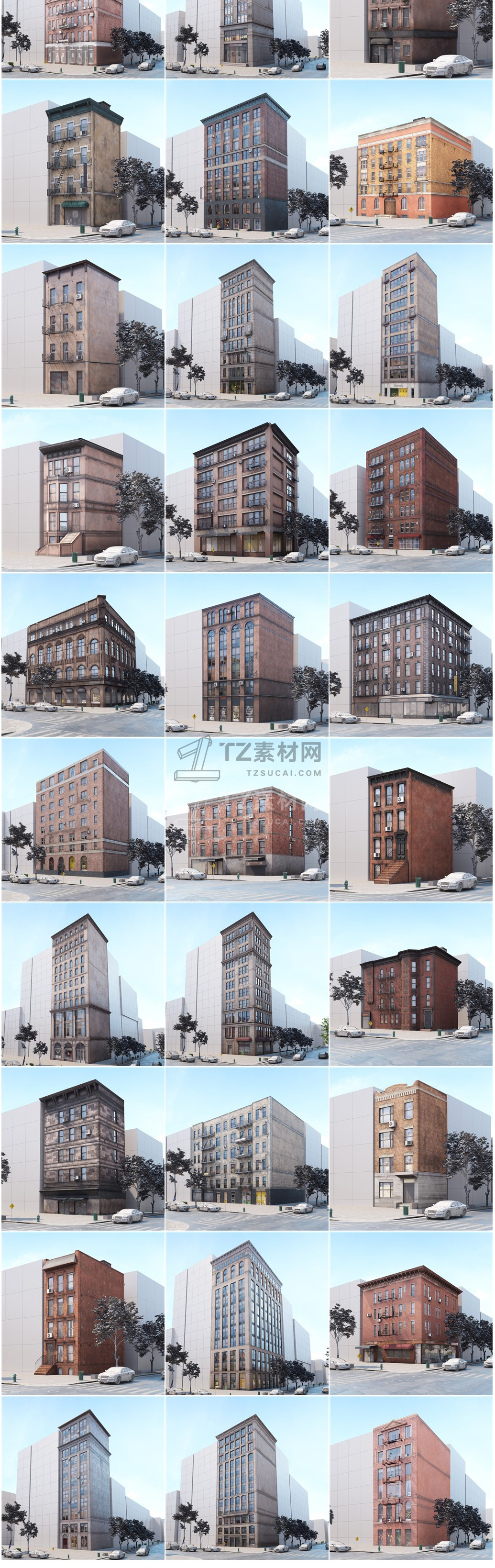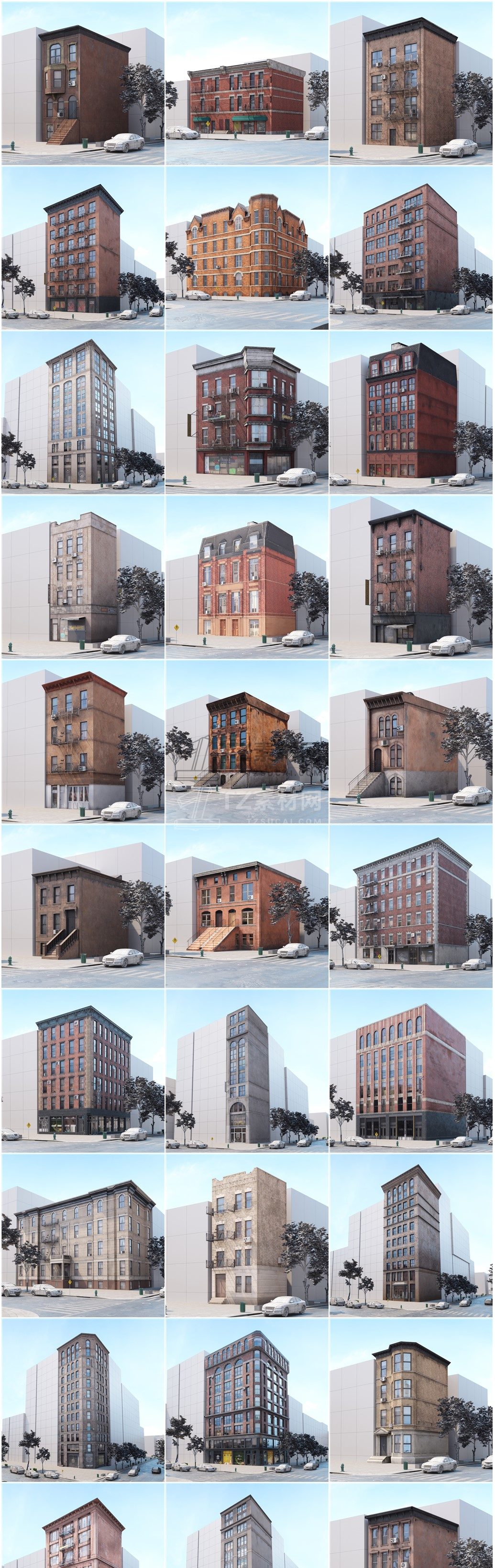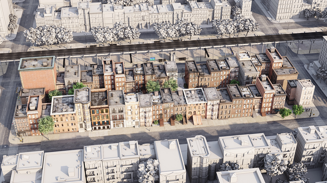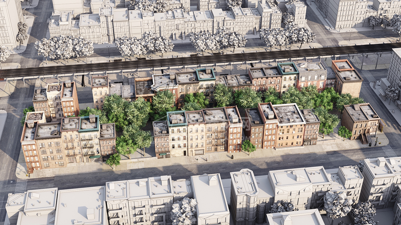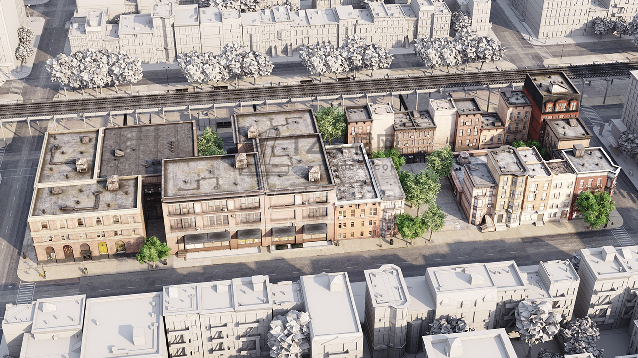 包括14套附加模型的人行道,树木,城市道具和街道。