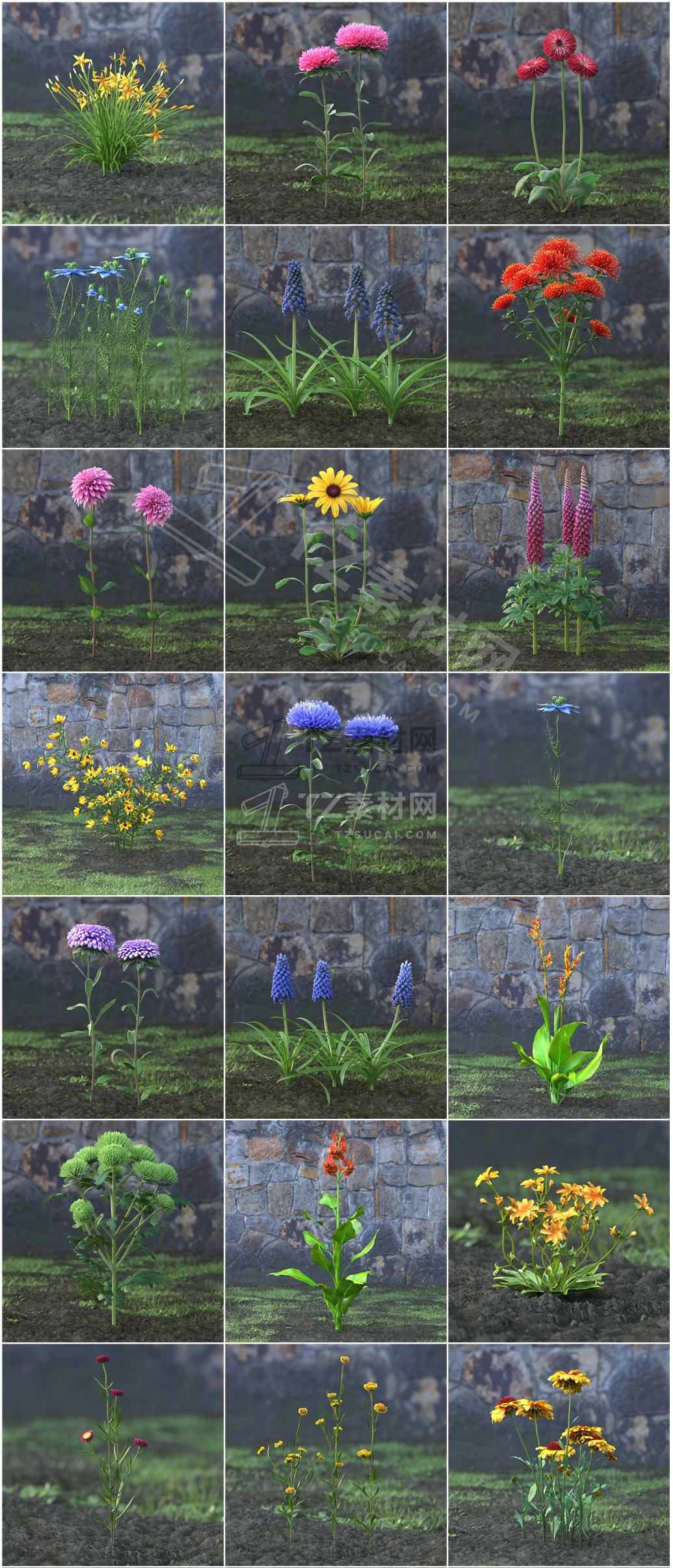 Archmodels vol. 214 includes 60 professional, highly detailed 3d models for architectural visualizations. This collection comes with 60 high quality models of garden flowers with all textures and materials. All objects are ready to use in your visualizations.