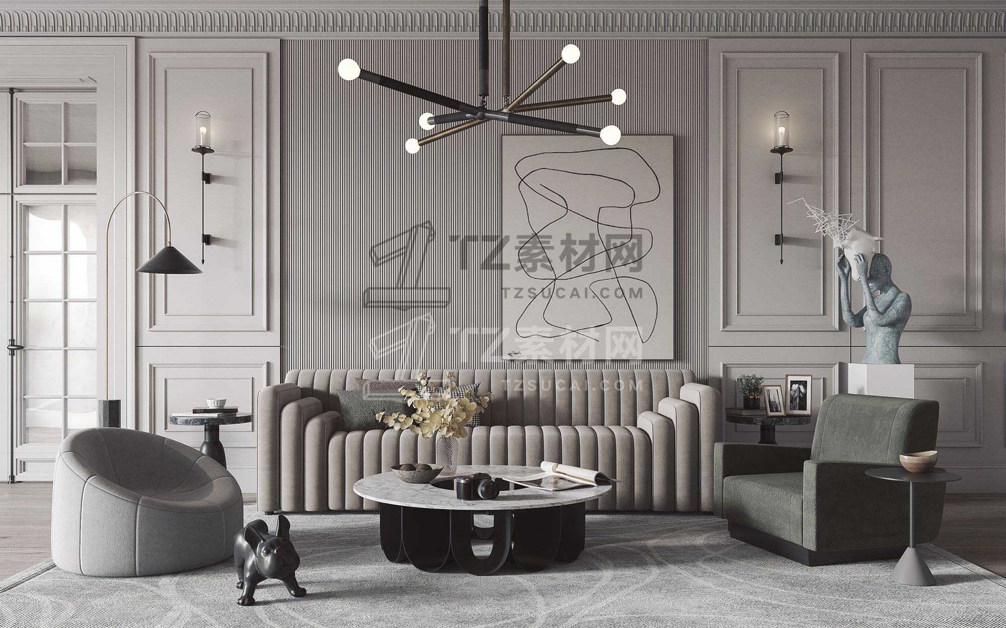 现代客厅餐厅模型+3dmax2016+VR渲染器-有灯光