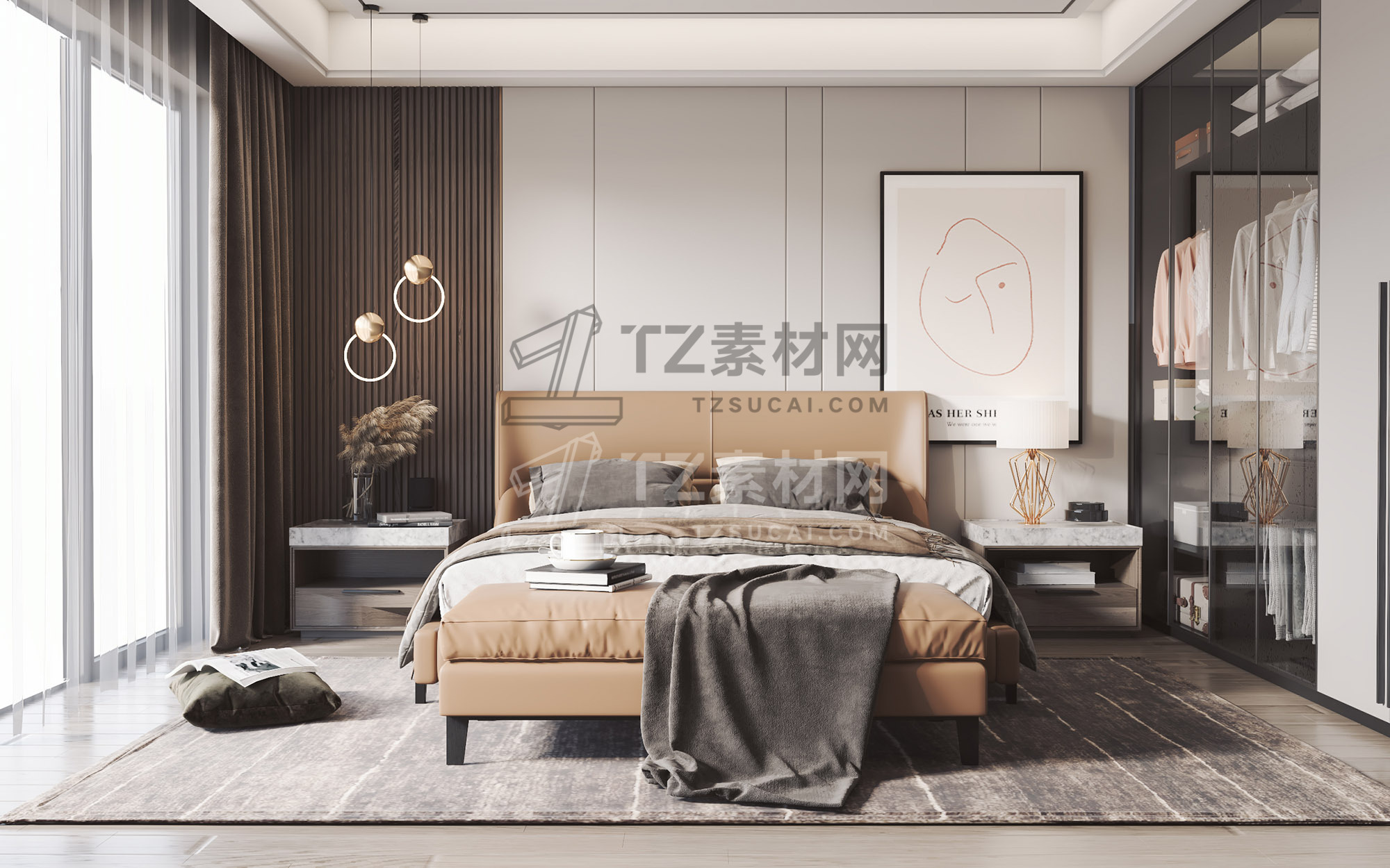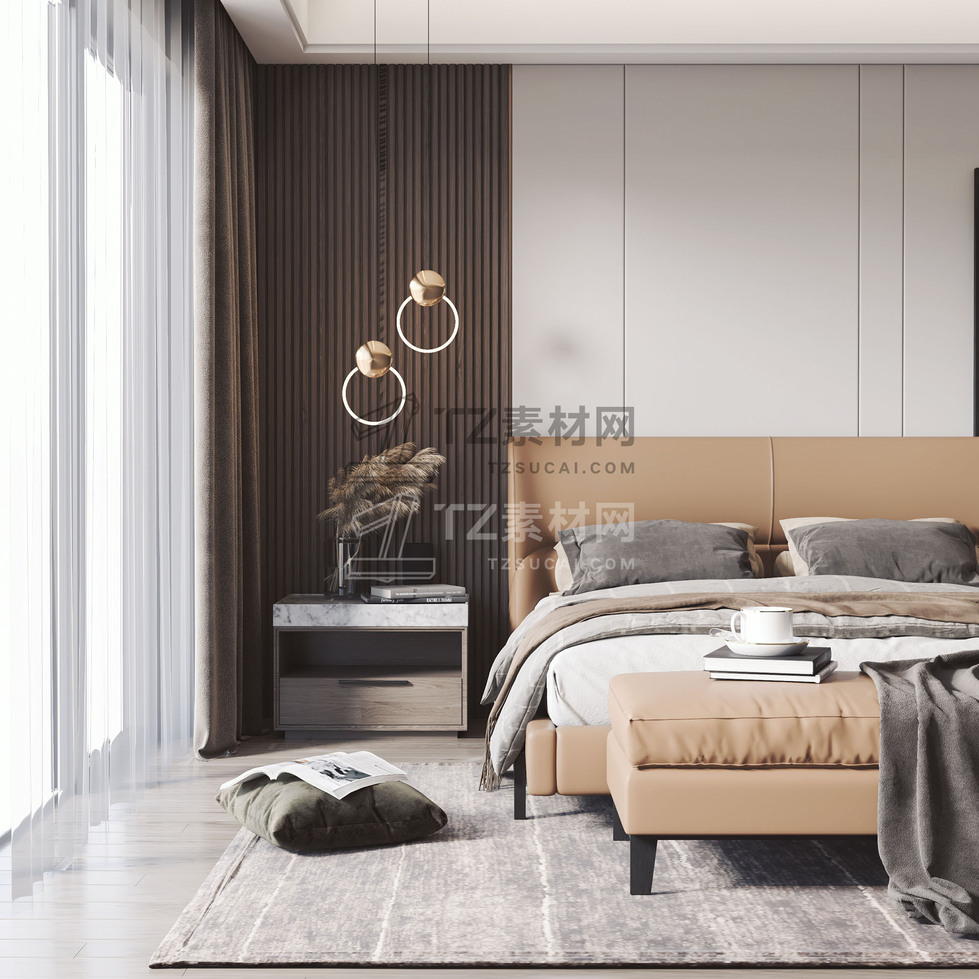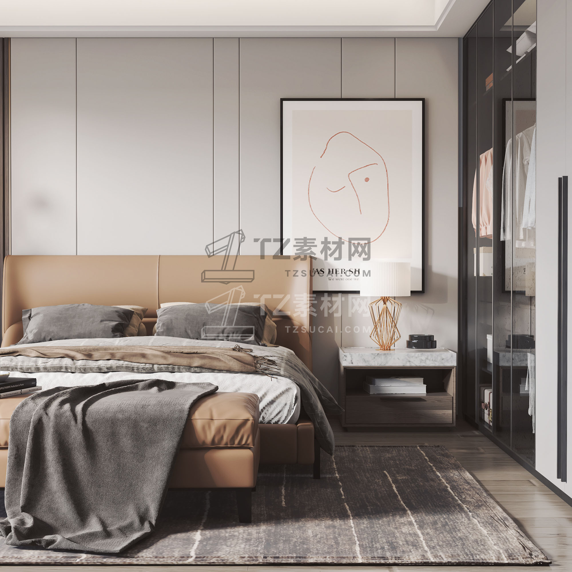 现代卧室模型+3dmax2014+VR渲染器-有灯光