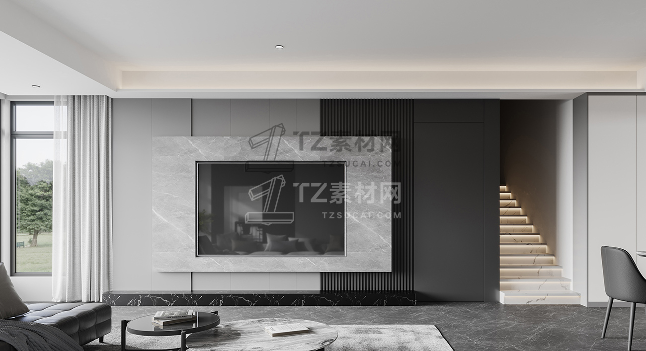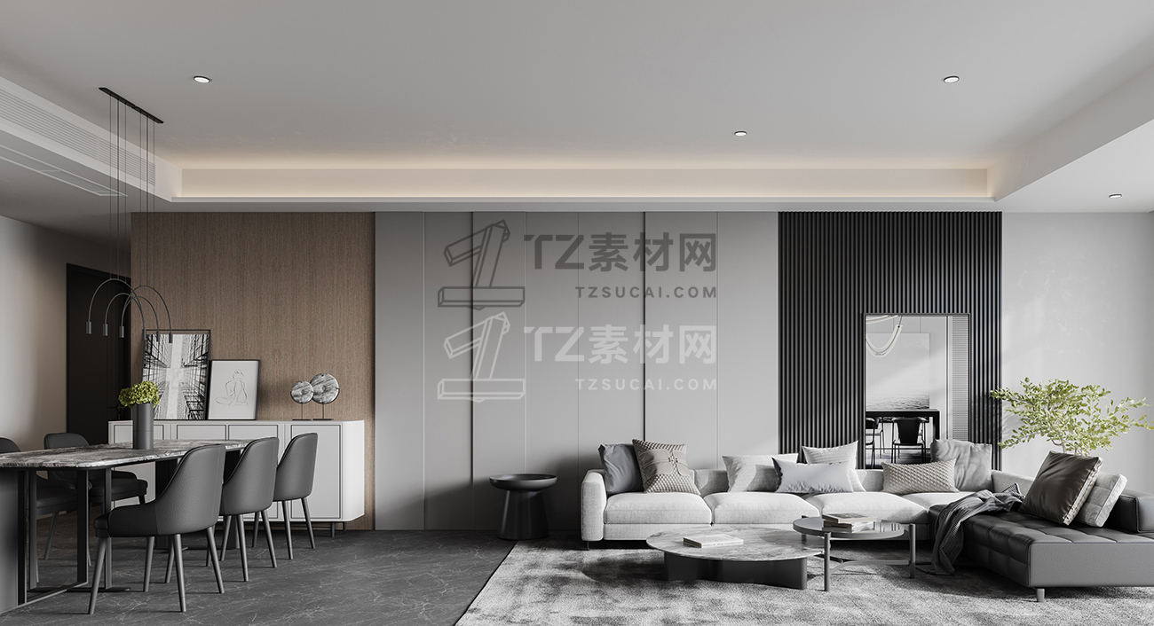 现代简约黑白灰客厅餐厅3DMAX cr2017