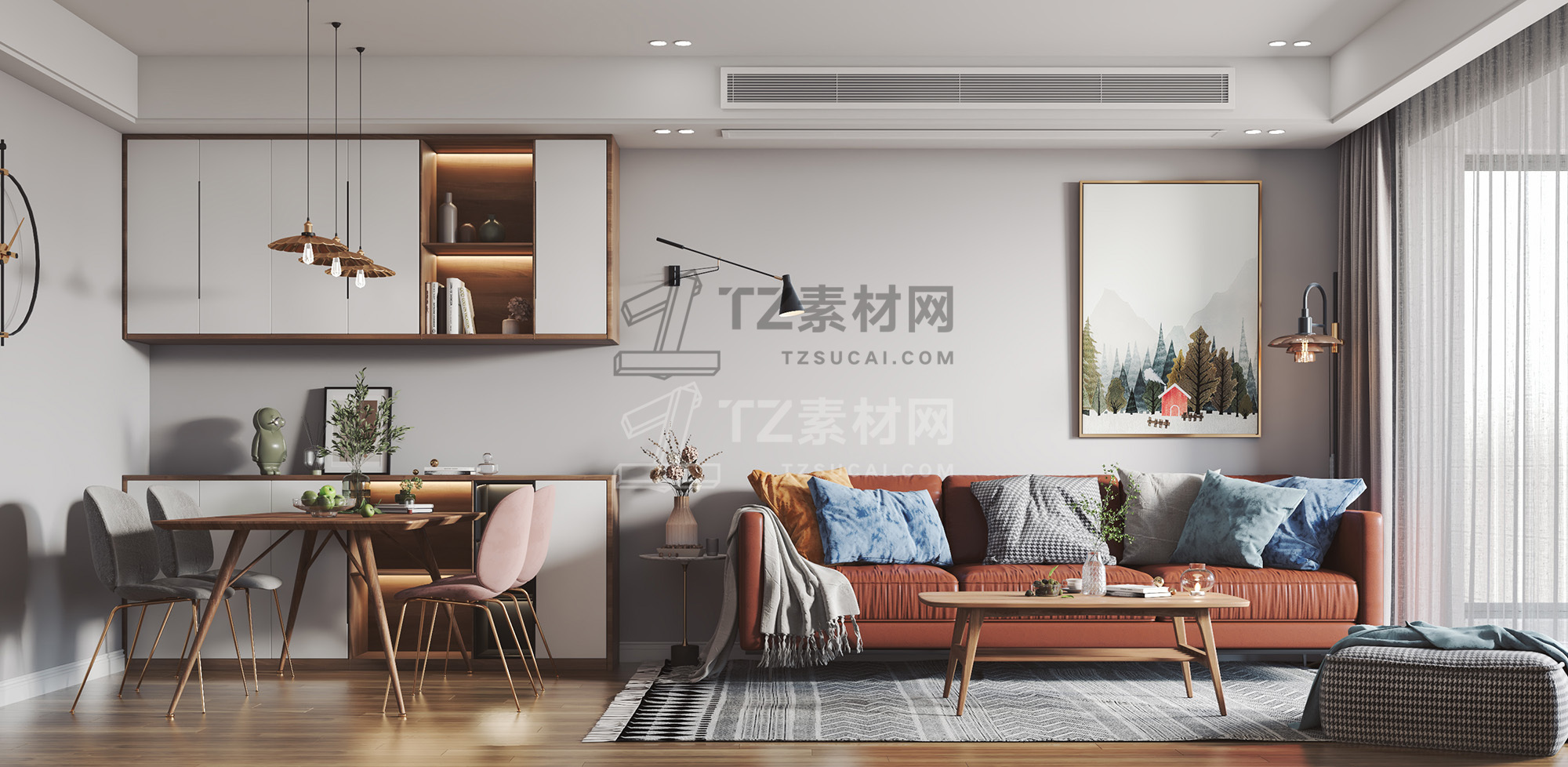北欧客厅餐厅模型+3dmax2014+VR渲染器