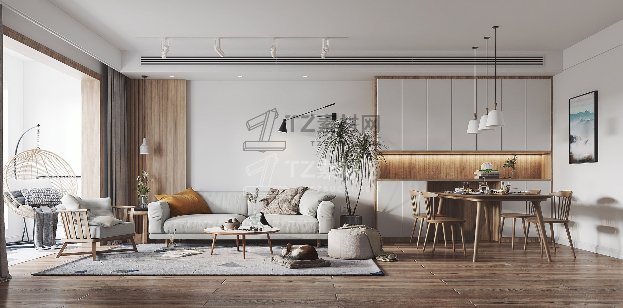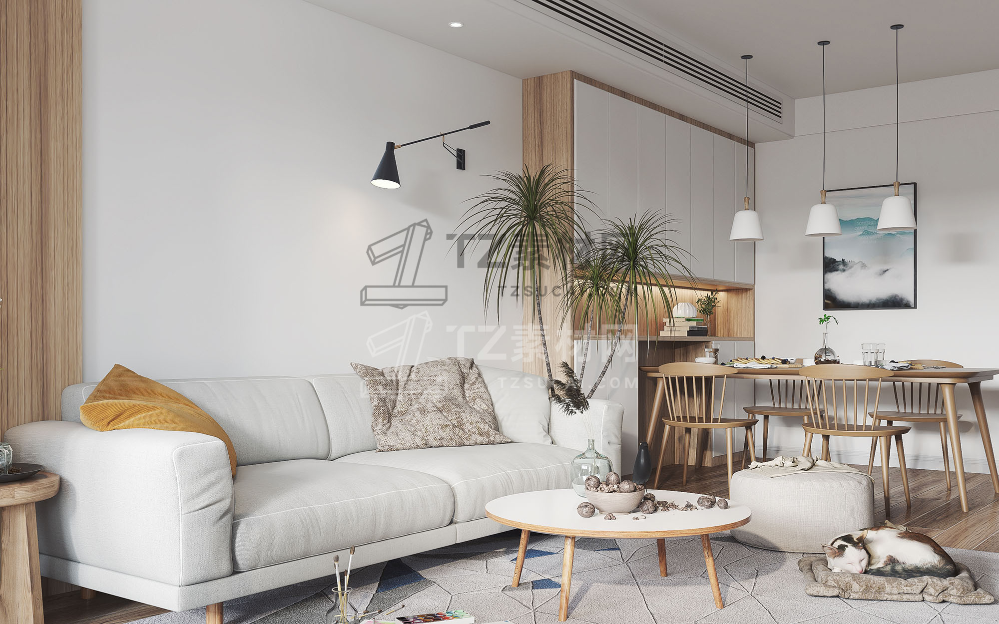 北欧客厅餐厅模型+3dmax2014+VR渲染器