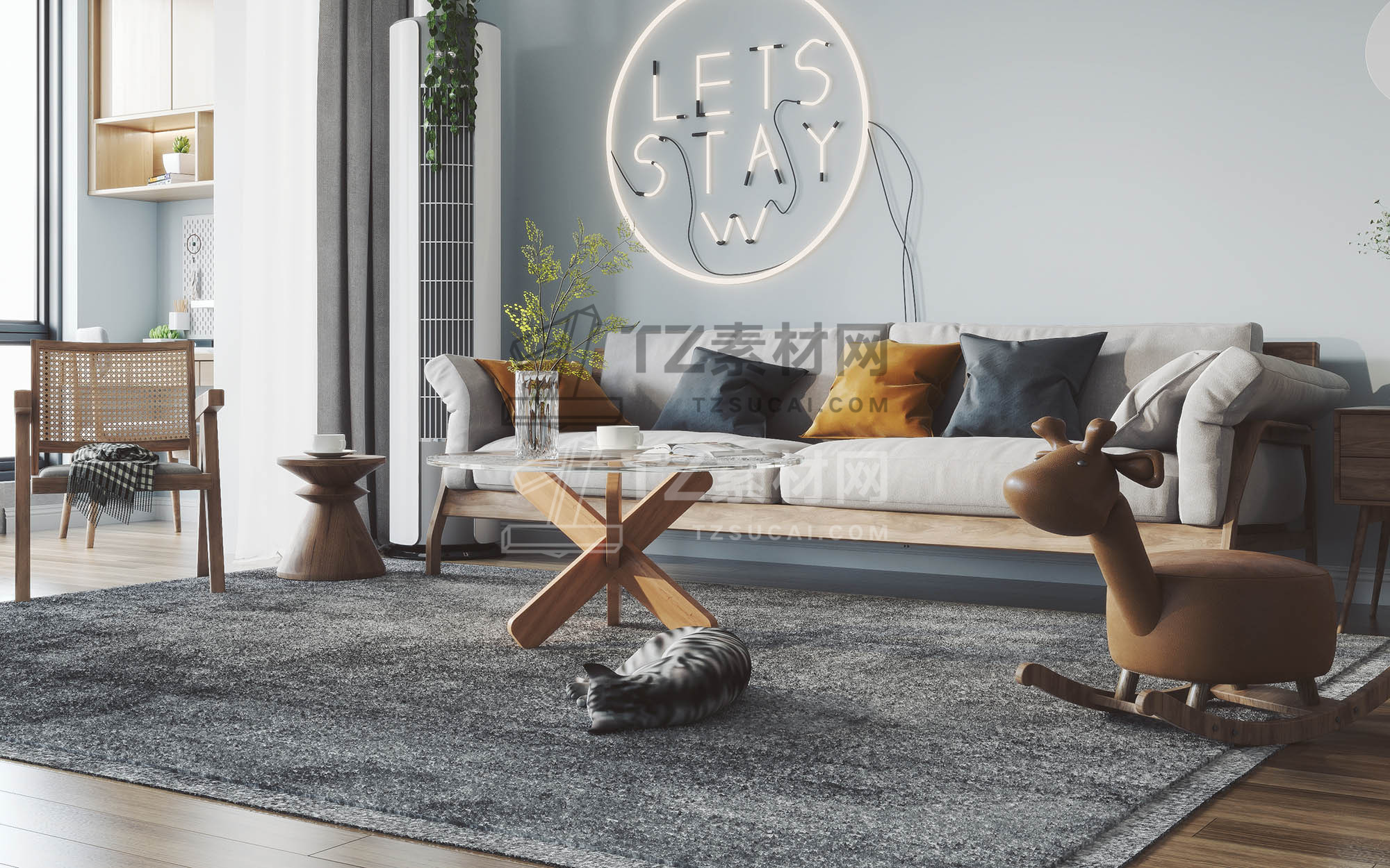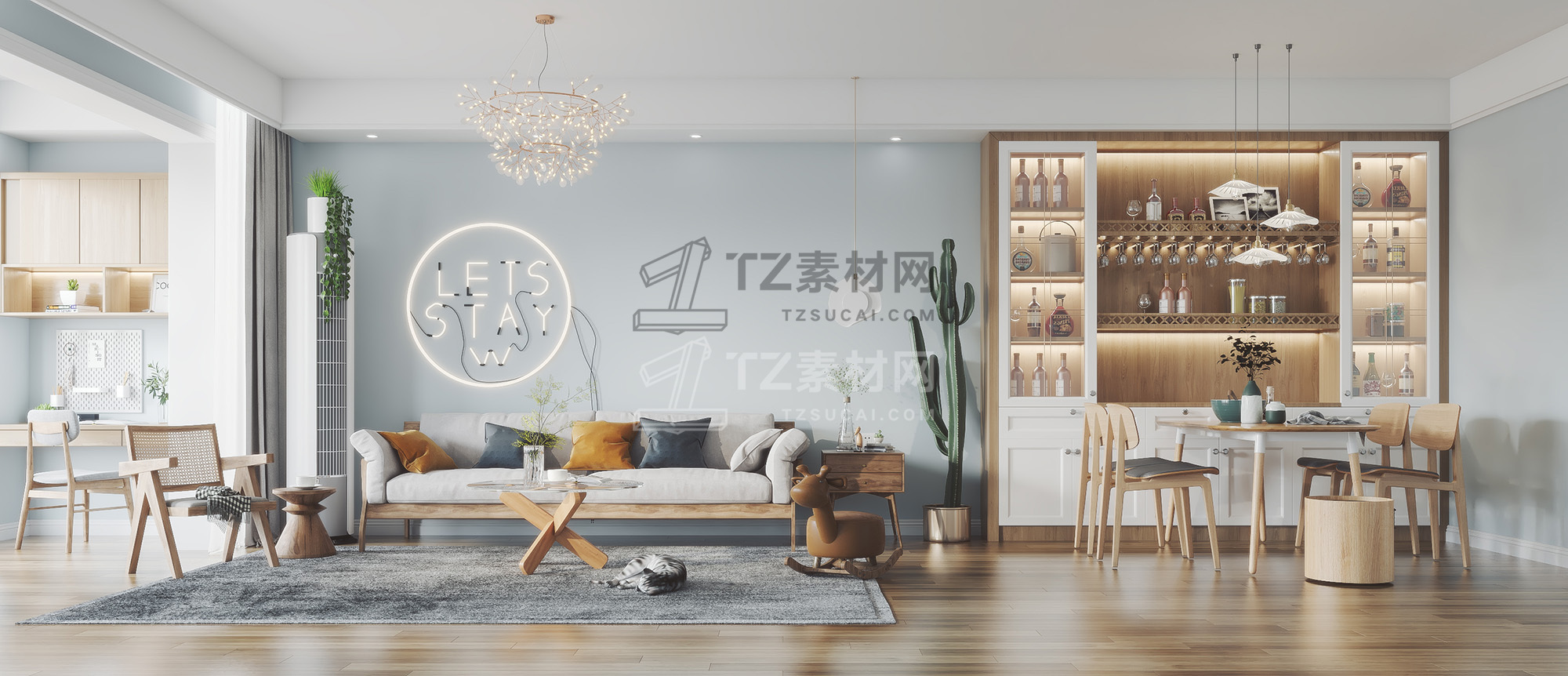 北欧客厅餐厅模型+3dmax2014+VR渲染器