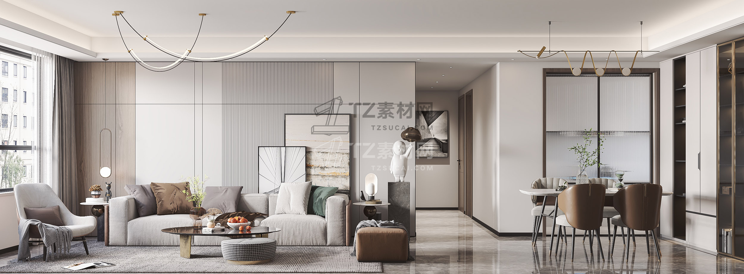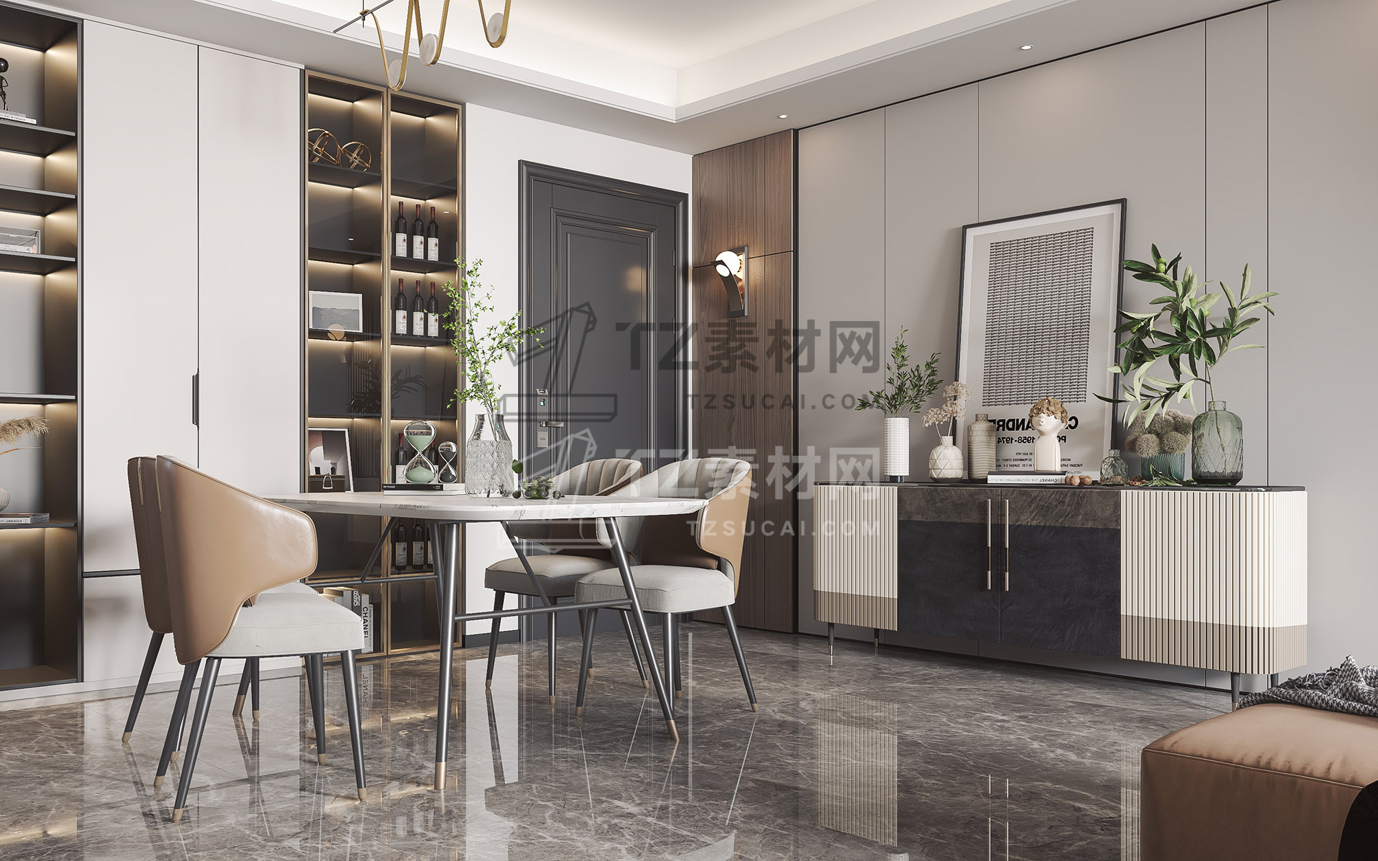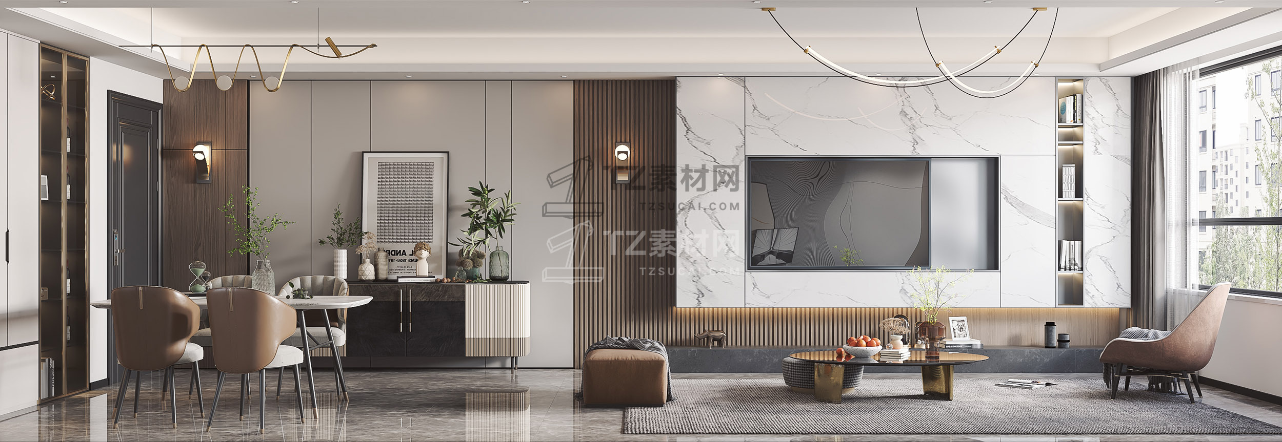 现代客厅餐厅模型+3dmax2014+VR渲染器