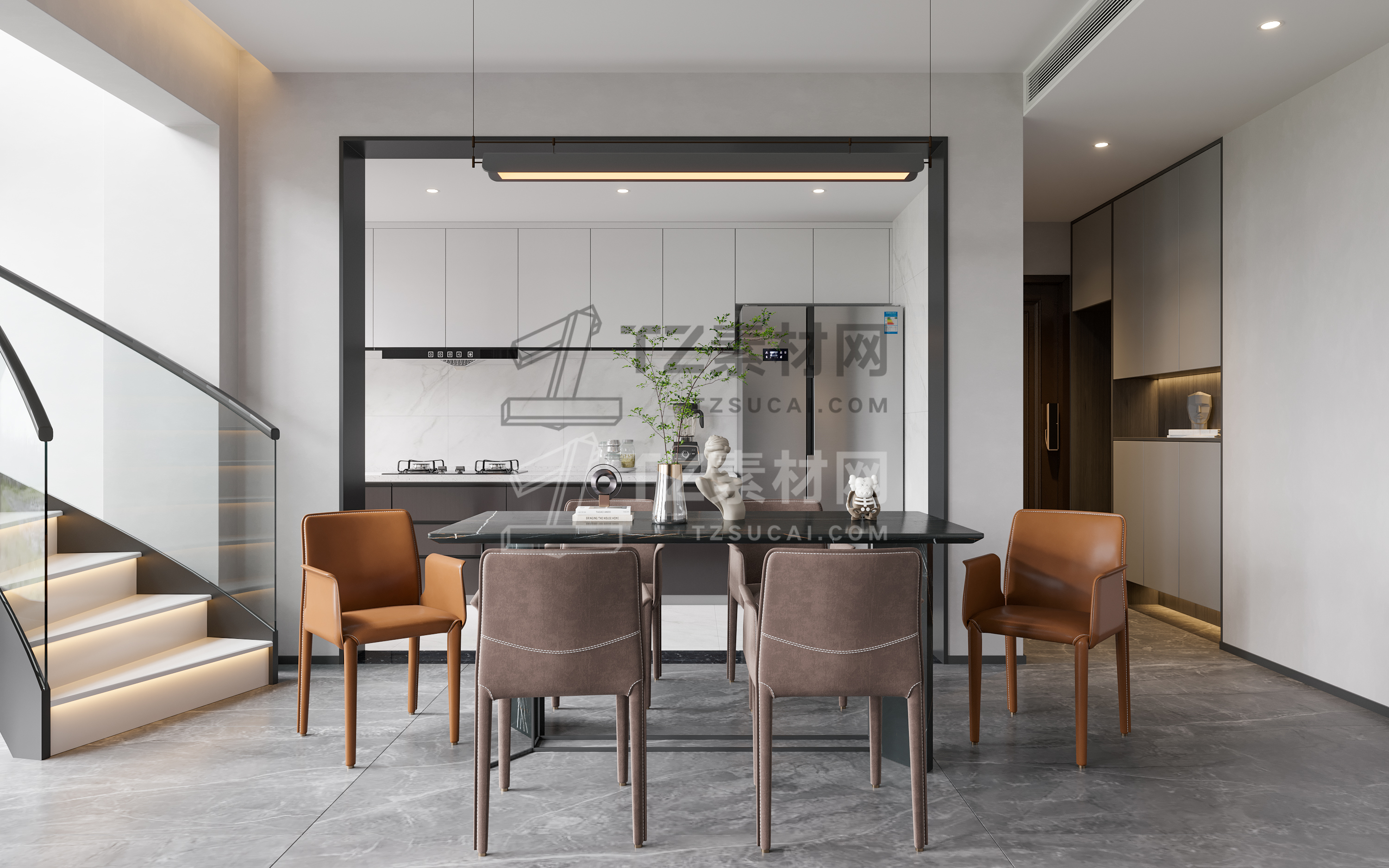 现代客厅餐厅模型+3dmax2014+VR渲染器