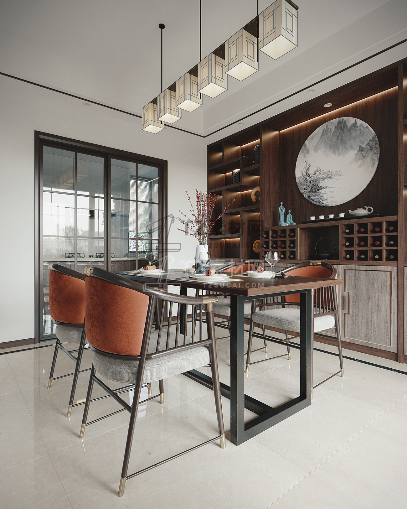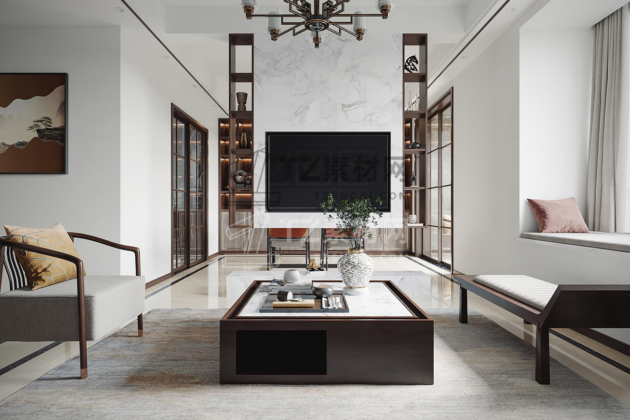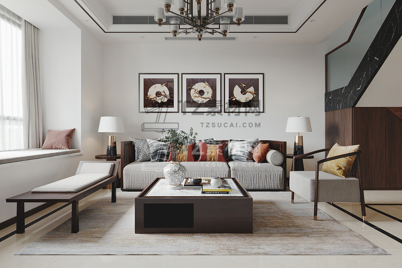 新中式客厅餐厅模型+3dmax2014+VR渲染器