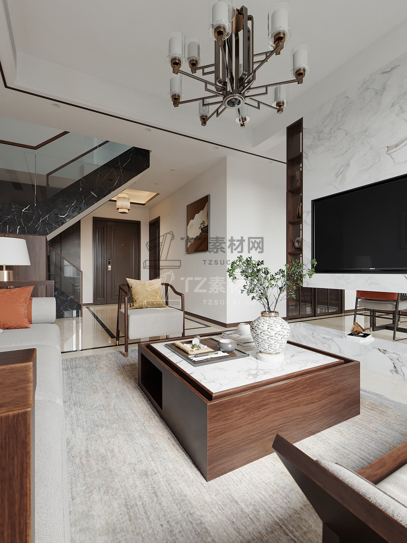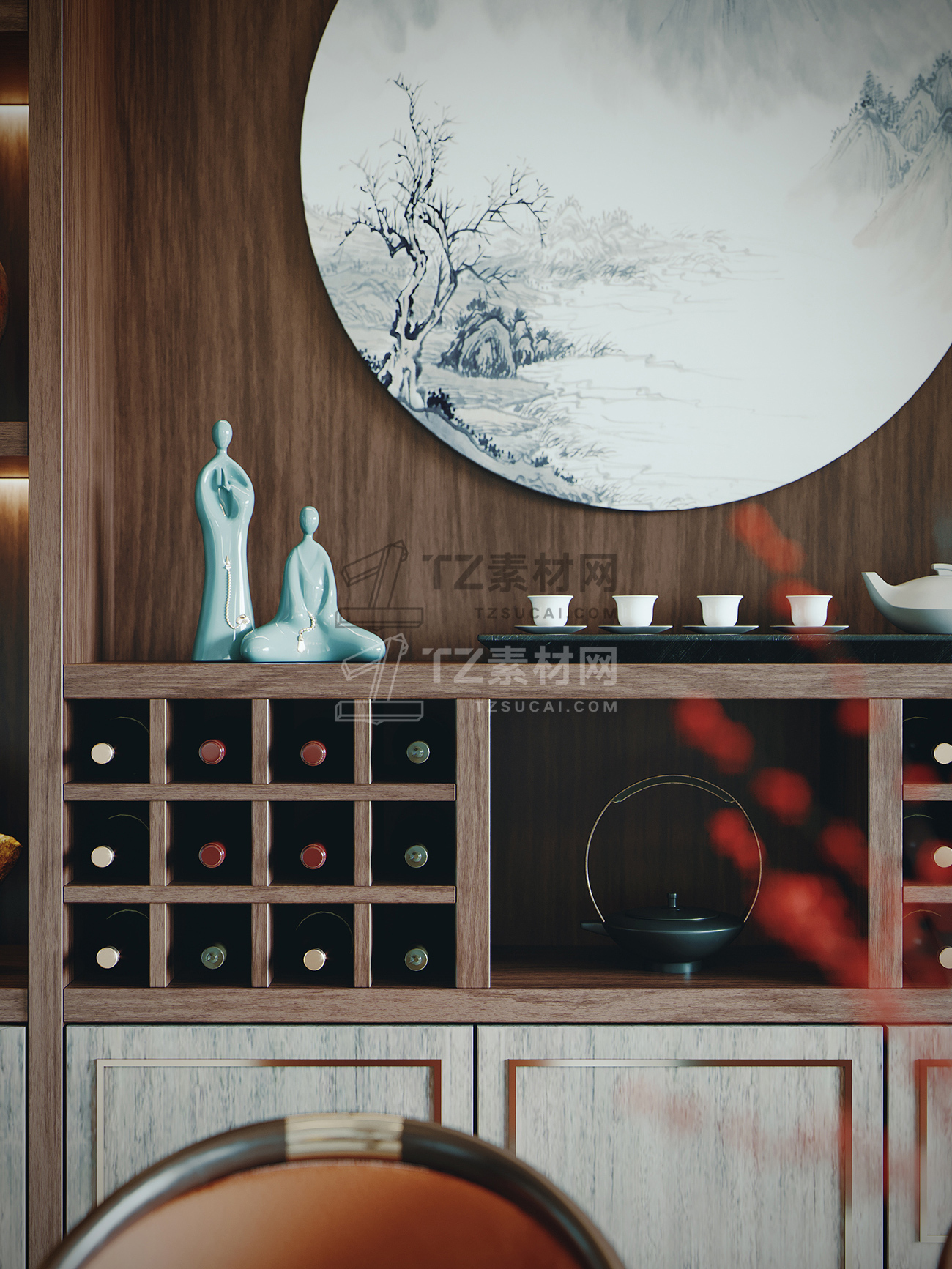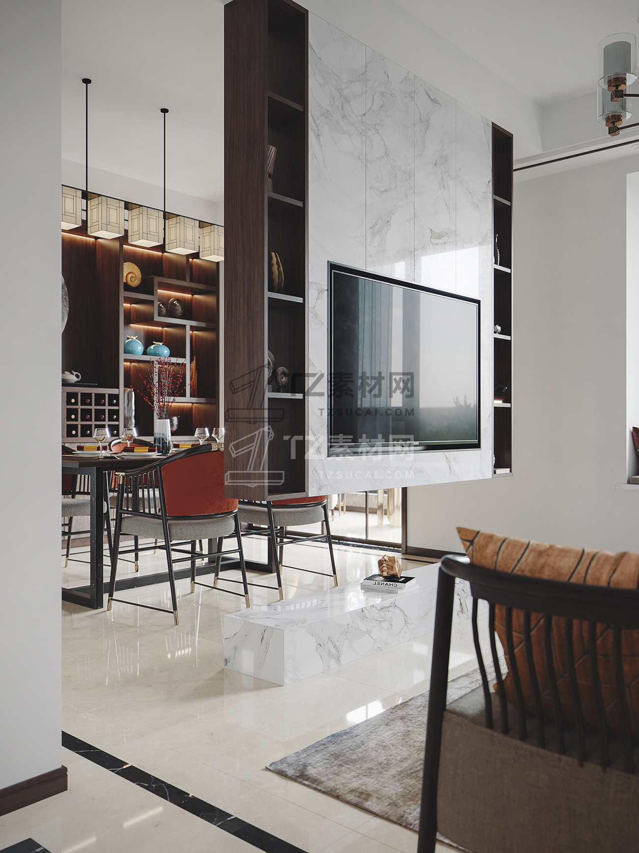 新中式客厅餐厅模型+3dmax2014+VR渲染器