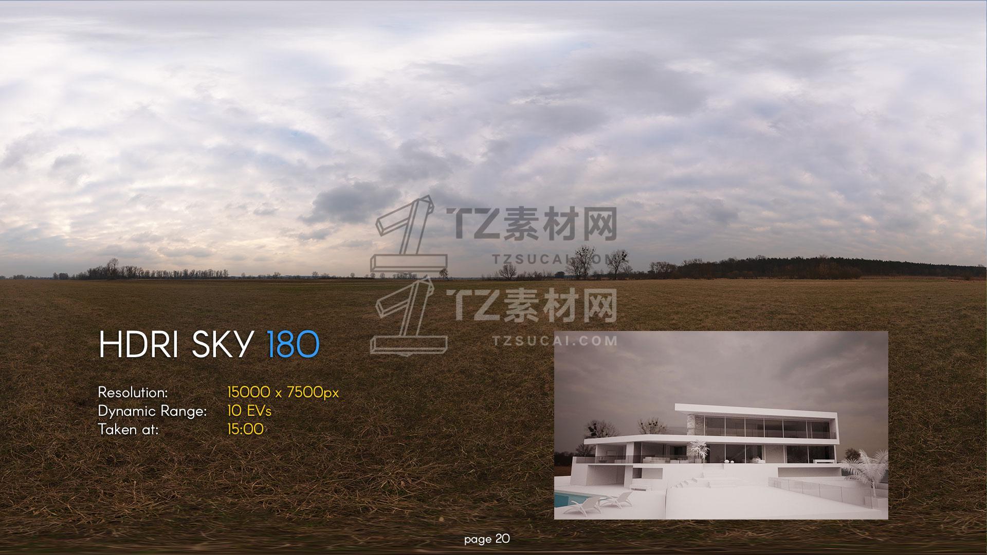 集合包括20个非常高品质的全球形HDRI天空161-180。