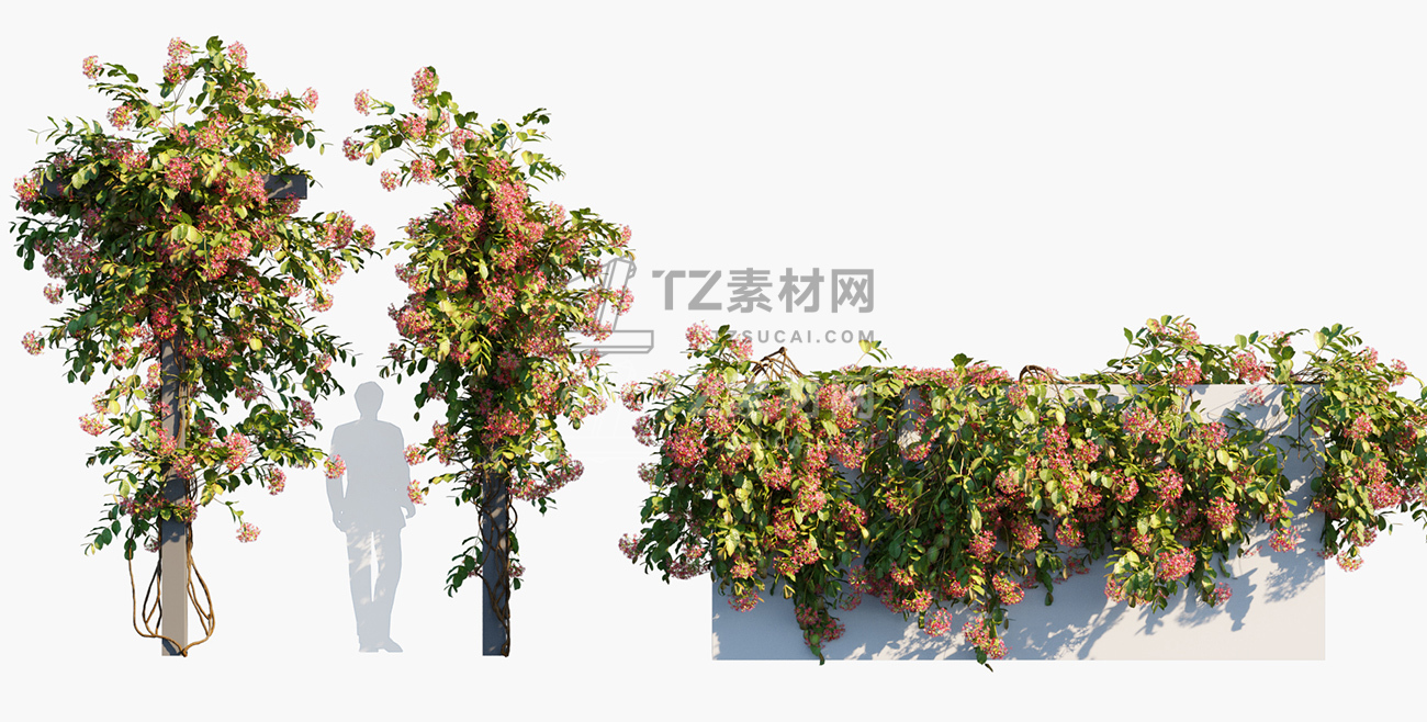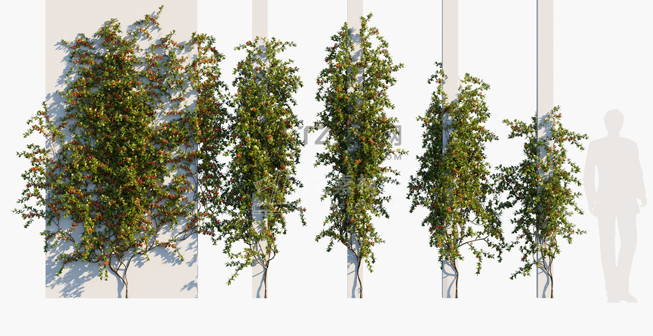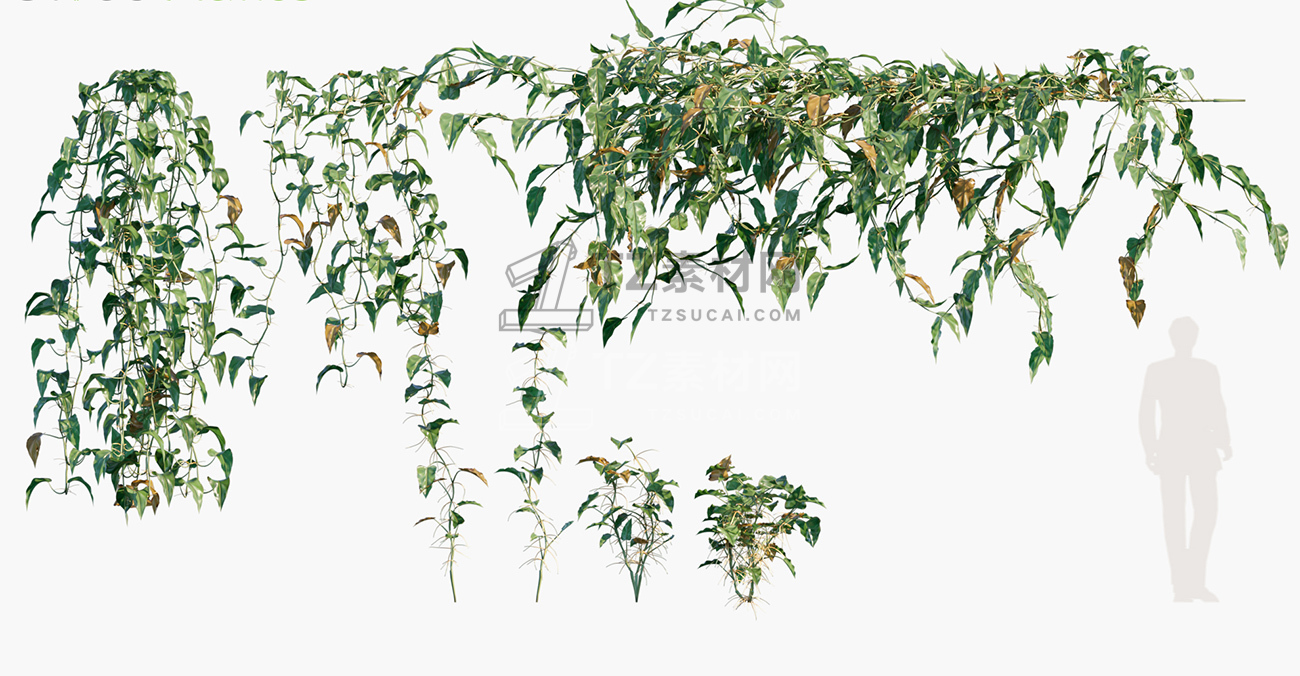 包含15种共80个常见藤蔓和爬山虎植物3D模型,3DS MAX格式,包含贴图材质